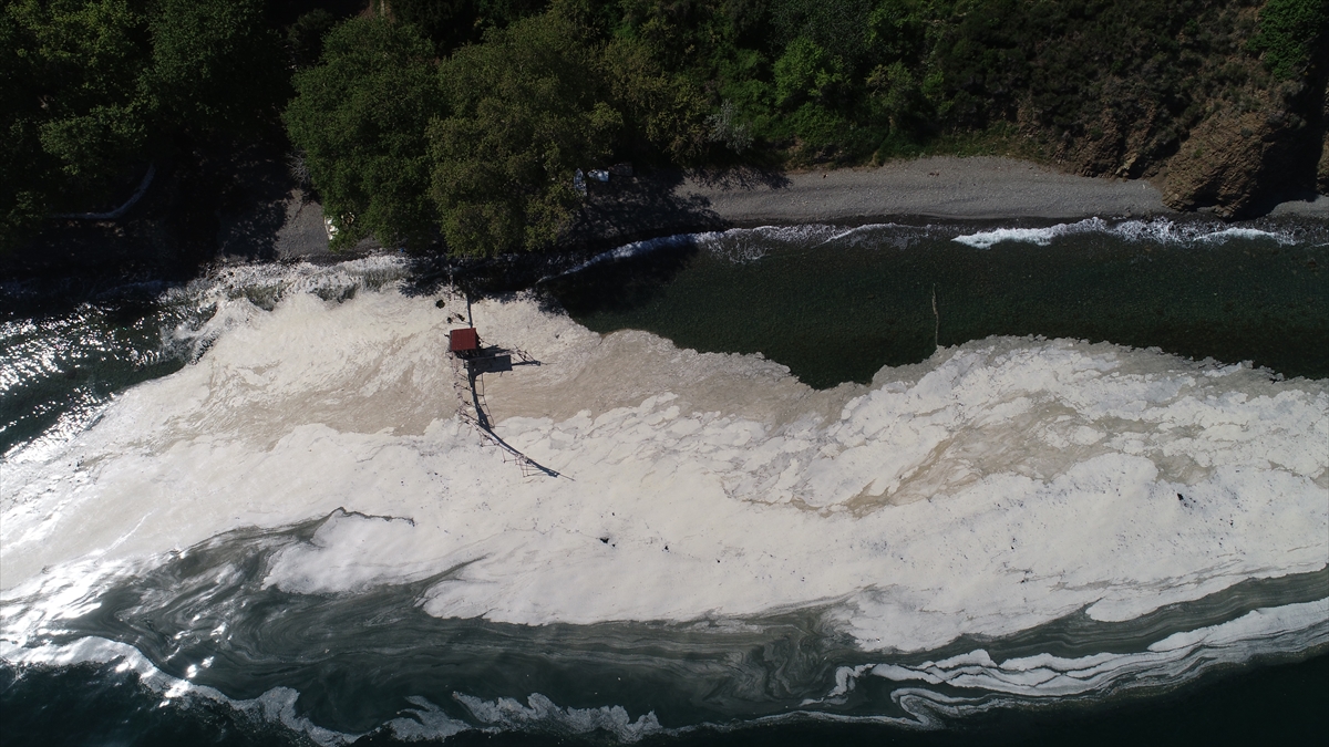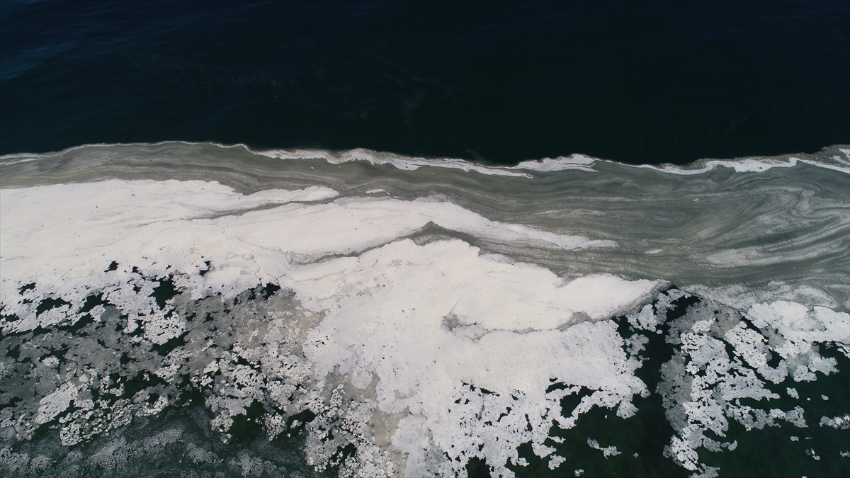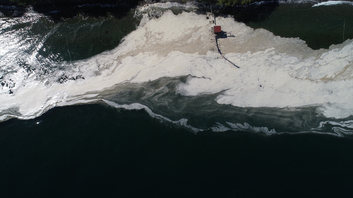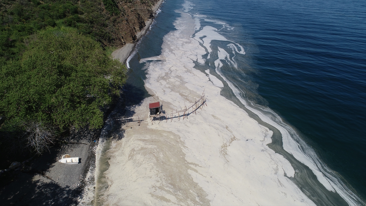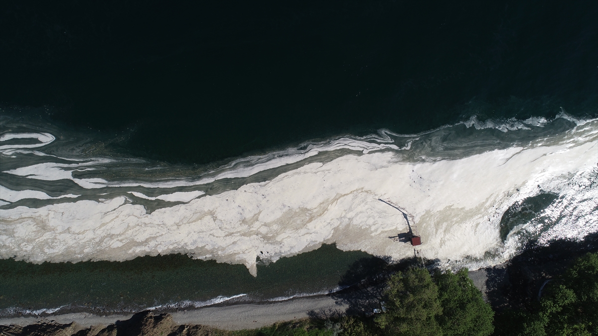 Tekirdağ'da deniz salyası (müsilaj) olarak adlandırılan beyaz tabaka kıyıda da birikti.