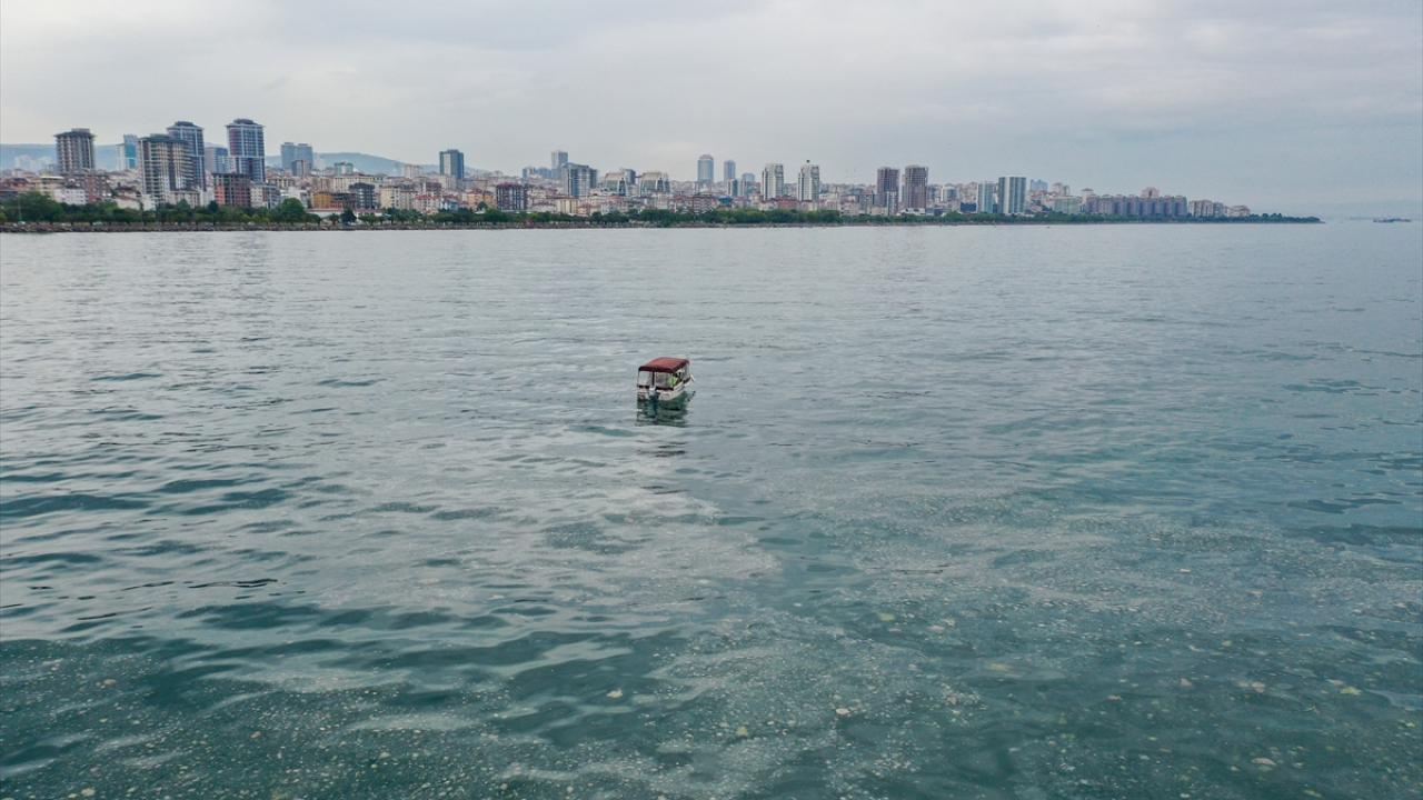 Bostancı bölgesinde, özellikle suların durgun olduğu marinalarda yoğun biçimde görülen müsilaj, balıkçıların da işini zorlaştırıyor.