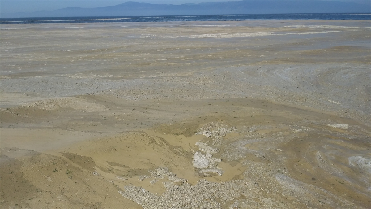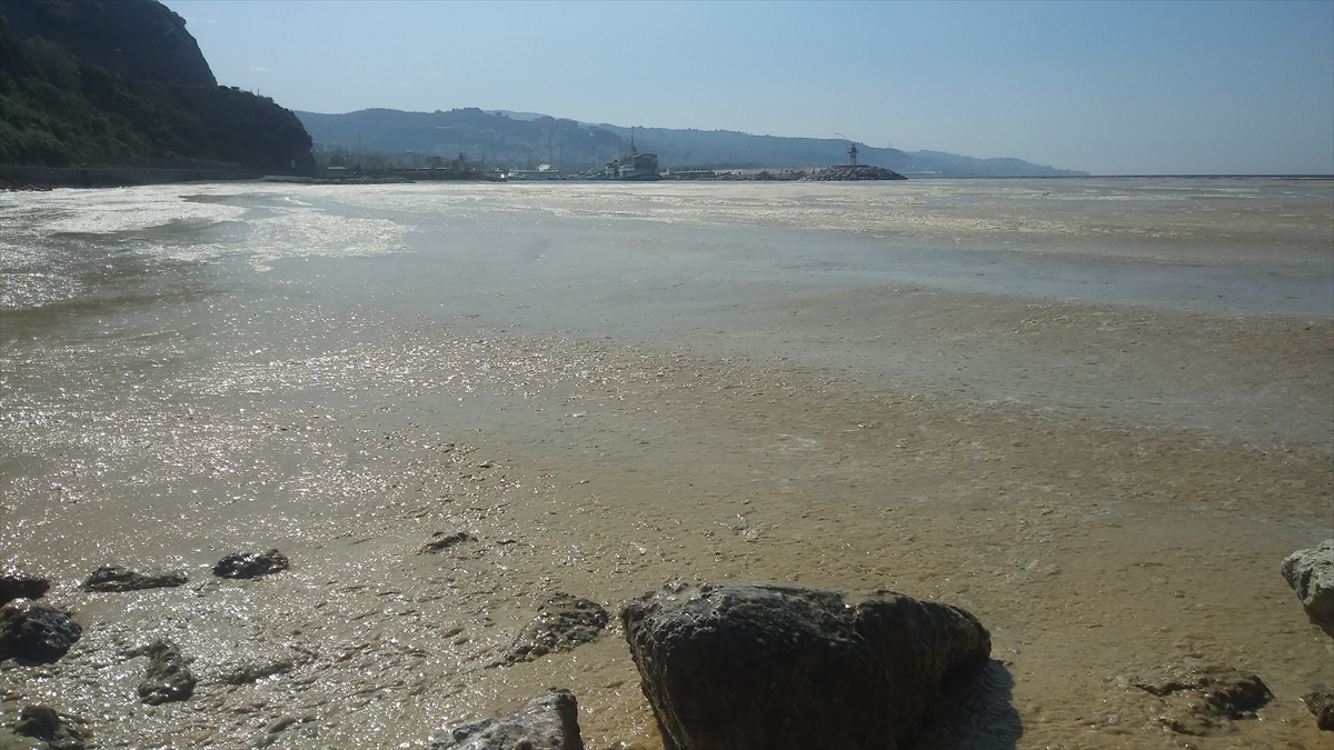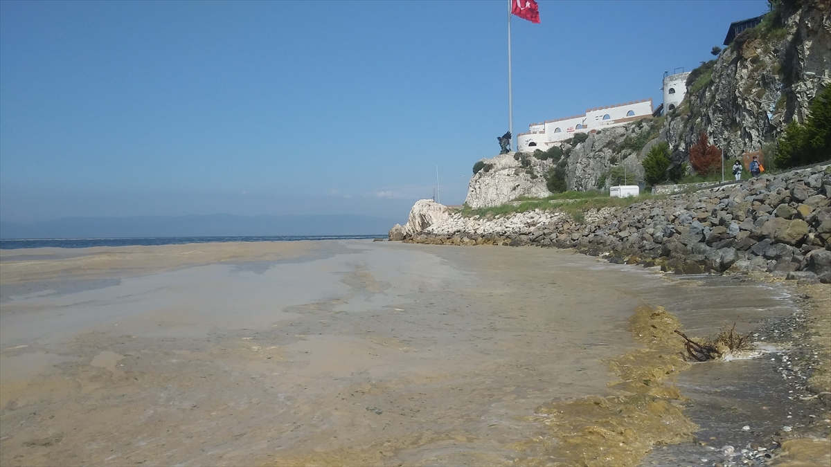 Deniz salyasından kaynaklanan bir tabakayla kaplanan Mudanya sahili, ilginç görüntü oluşturdu.