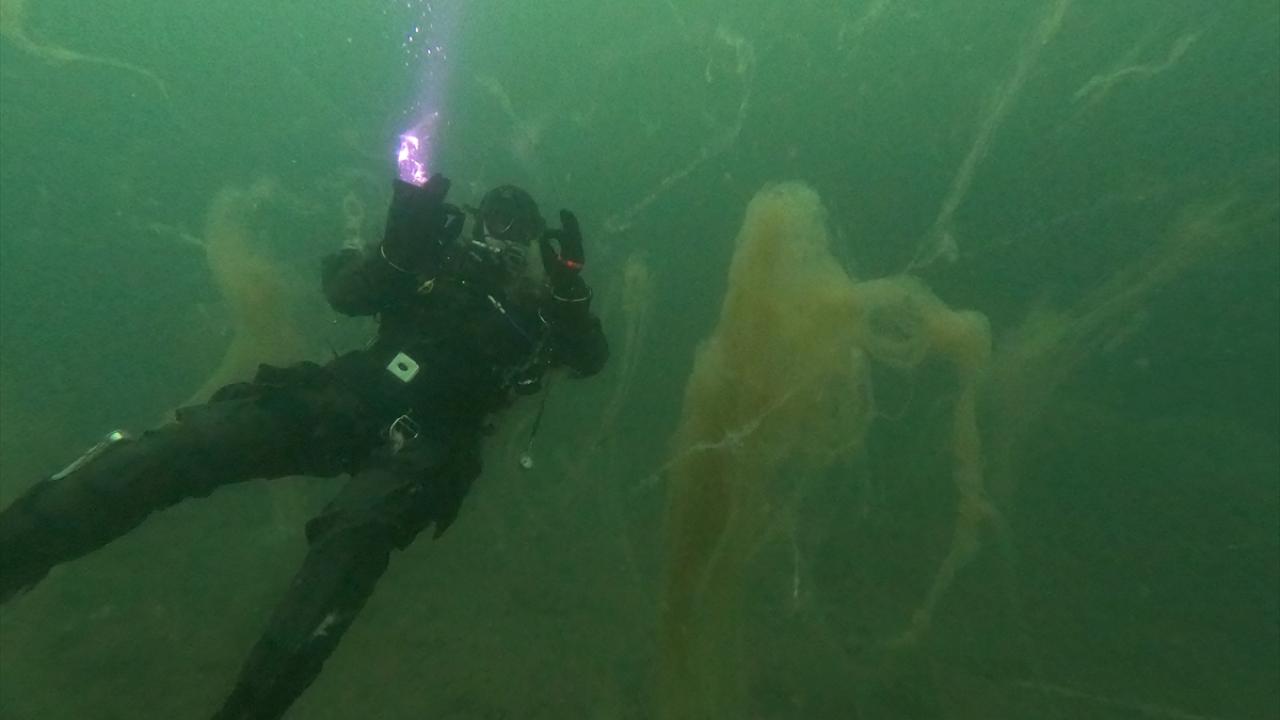 Deniz yüzeyinden dağılsa da 19 metre derinliğe kadar örümcek ağını andıran yapısıyla suda askıda kalan müsilaj, dalgıçlara sıra dışı deneyim yaşatıyor.