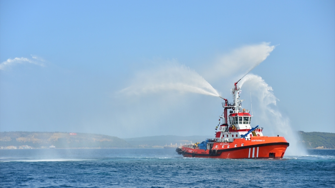 Kıyı Emniyeti Genel Müdürlüğüne ait römorkörler tarafından boğazda su gösterisi gerçekleştirildi.