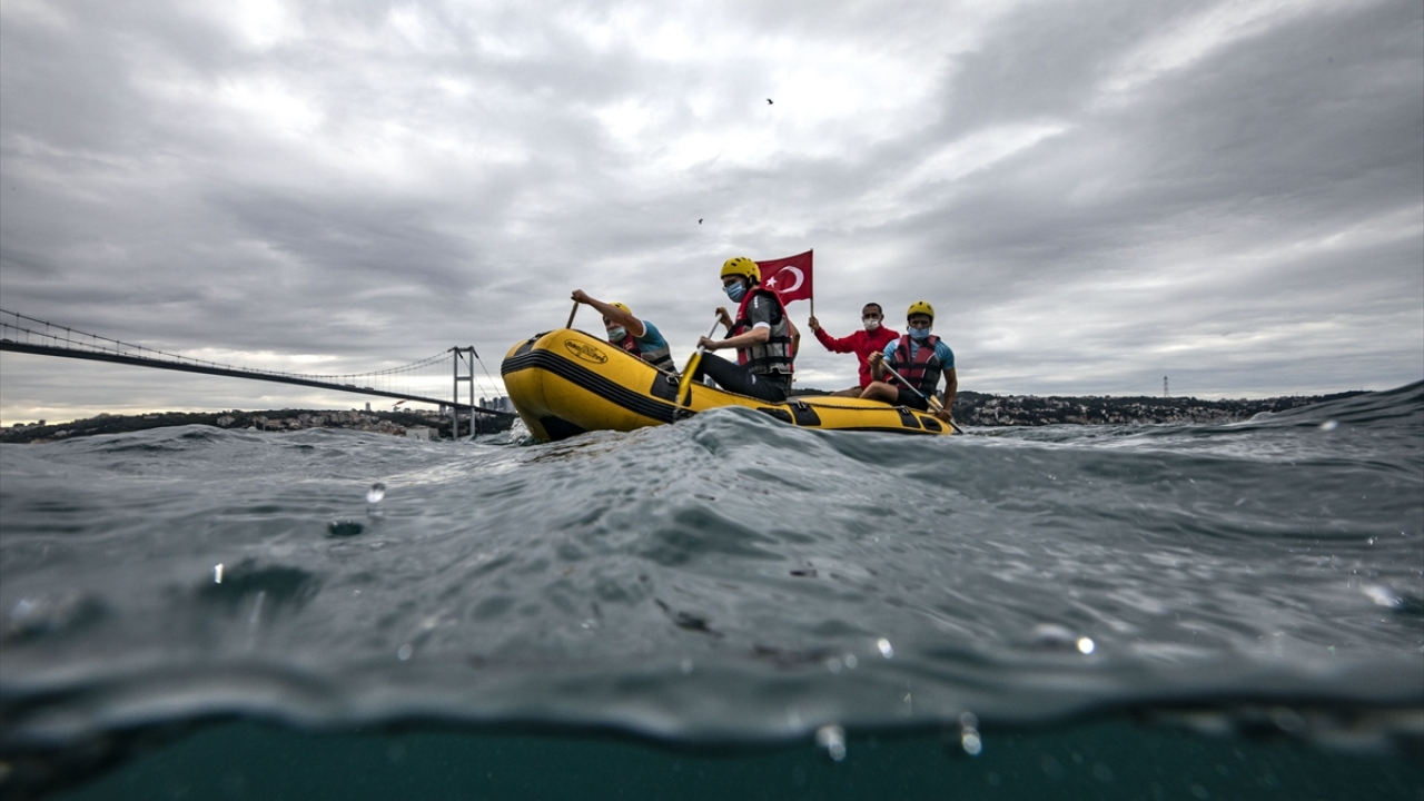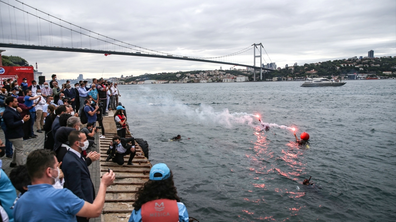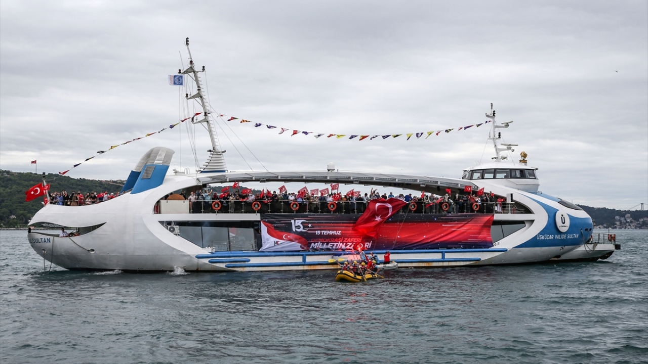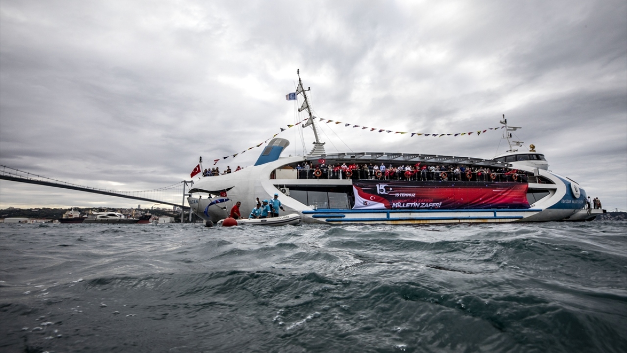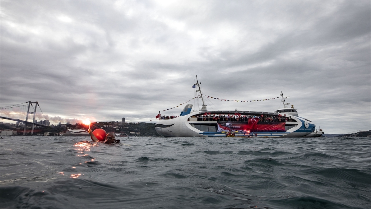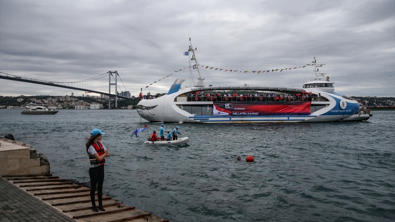 Üsküdar'da 15 Temmuz'un 4. yılında düzenlenen programda, dalgıçlar tarafından denizden çıkarılan Türk bayrağı, 15 Temmuz tasarımı giydirilen Valide Sultan Gemisi'ne asıldı.