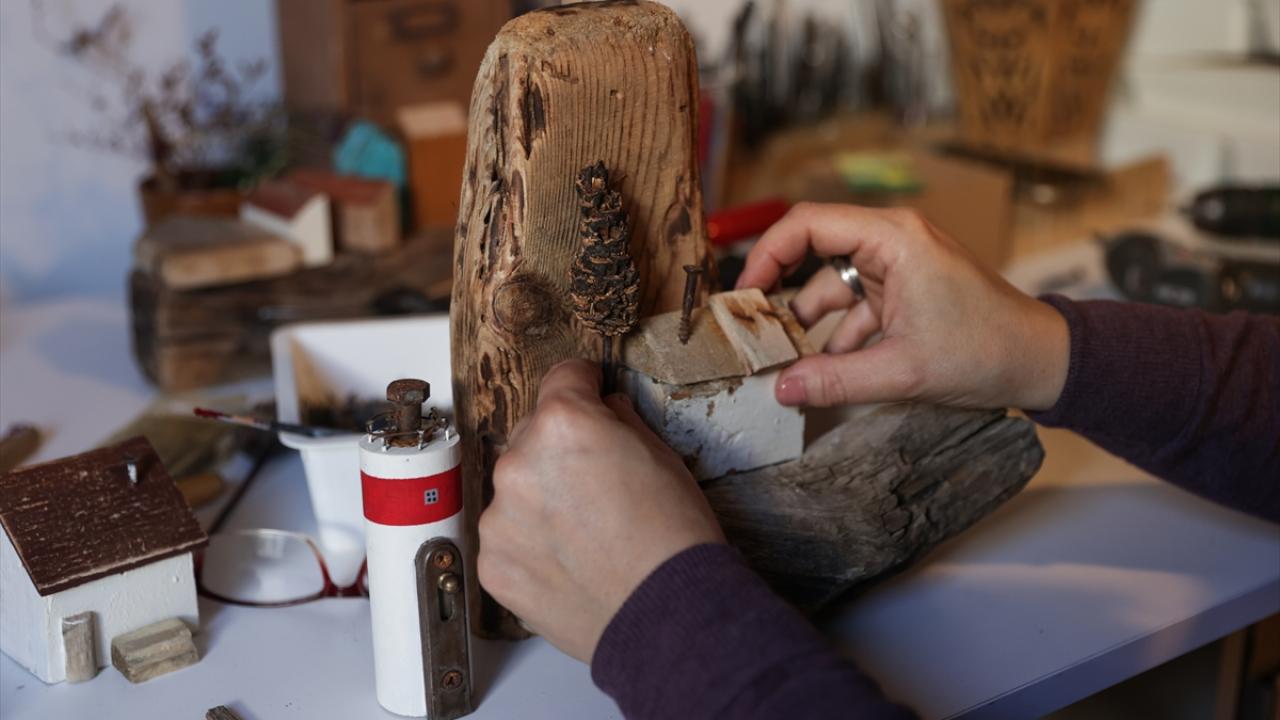 İzmir'de "driftwood" adı verilen sahile vurmuş odun parçalarının işlenmesi sanatıyla uğraşan Seda Dizlek, fırtına sonrası topladığı ağaç parçalarına hayalleriyle şekil veriyor.
