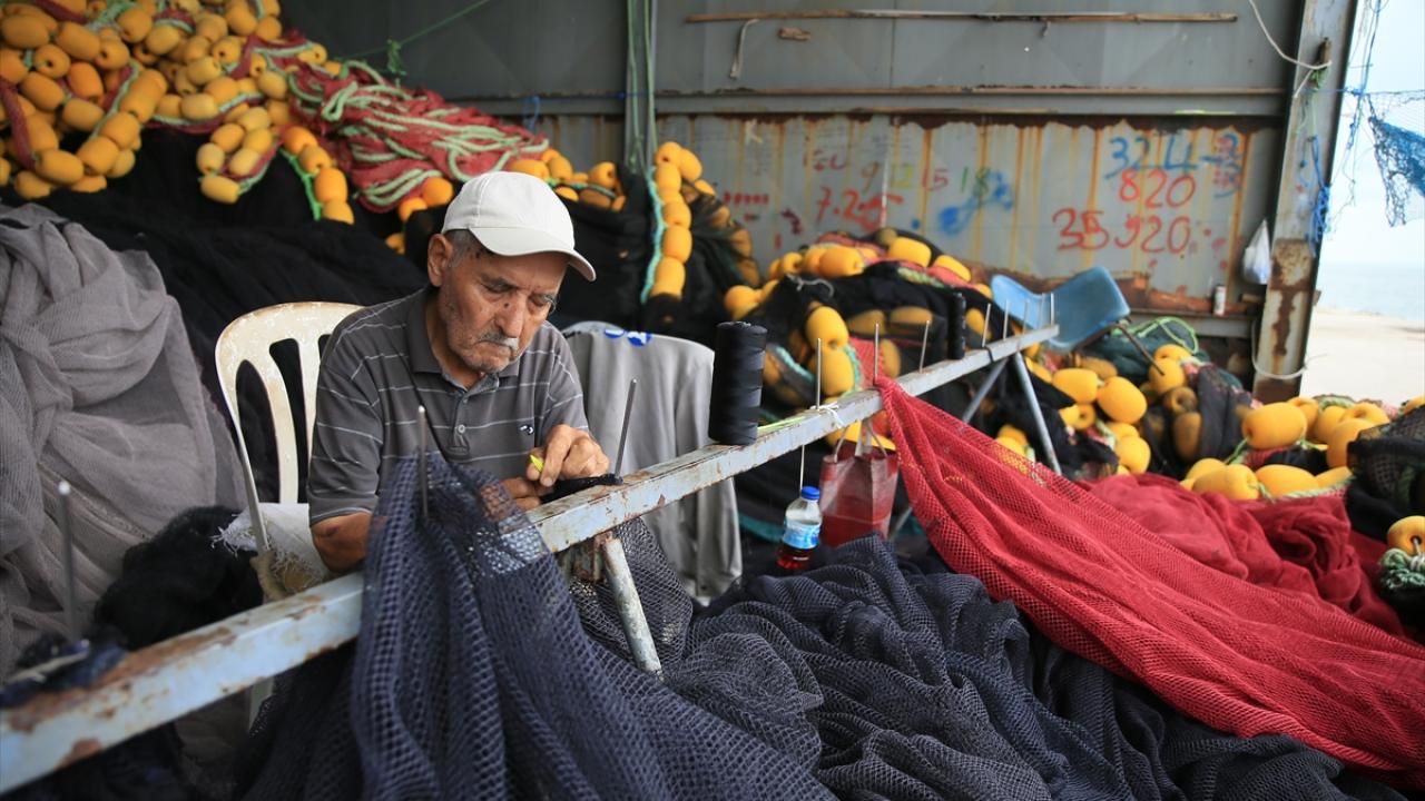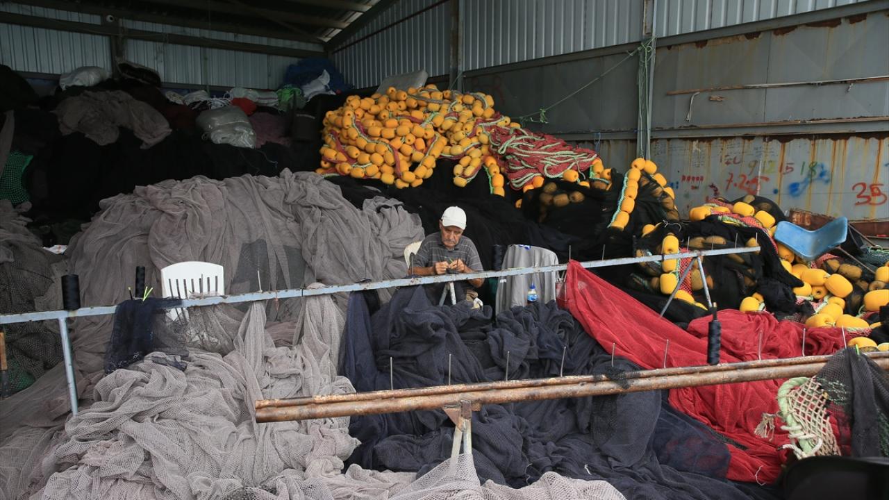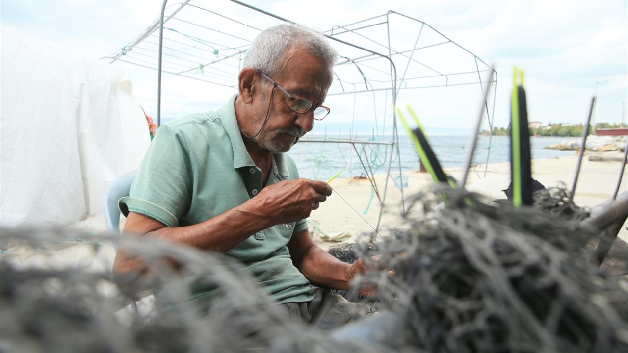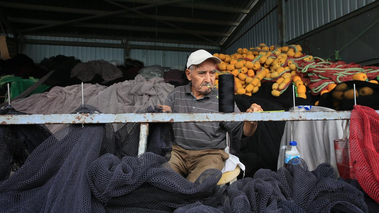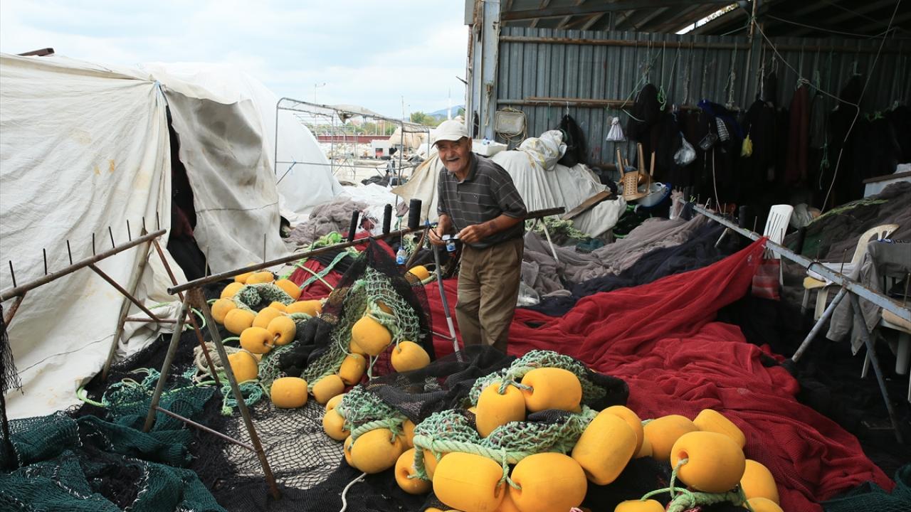 Yaşlarının ilerlemesi nedeniyle balıkçılığı bırakan Dönmez ve Özdeniz, her gün uğradıkları limanda balıkçılara ağ yapıyor ve yırtılan ağları onararak eski haline getiriyor.