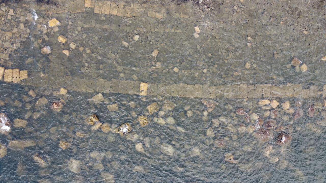 Balıkesir`in Burhaniye ilçesinde Adramytteion Antik Kenti`nin liman kalıntıları Ege Denizi`nin yaklaşık 40 metre çekilmesiyle görülebilir hale geldi.