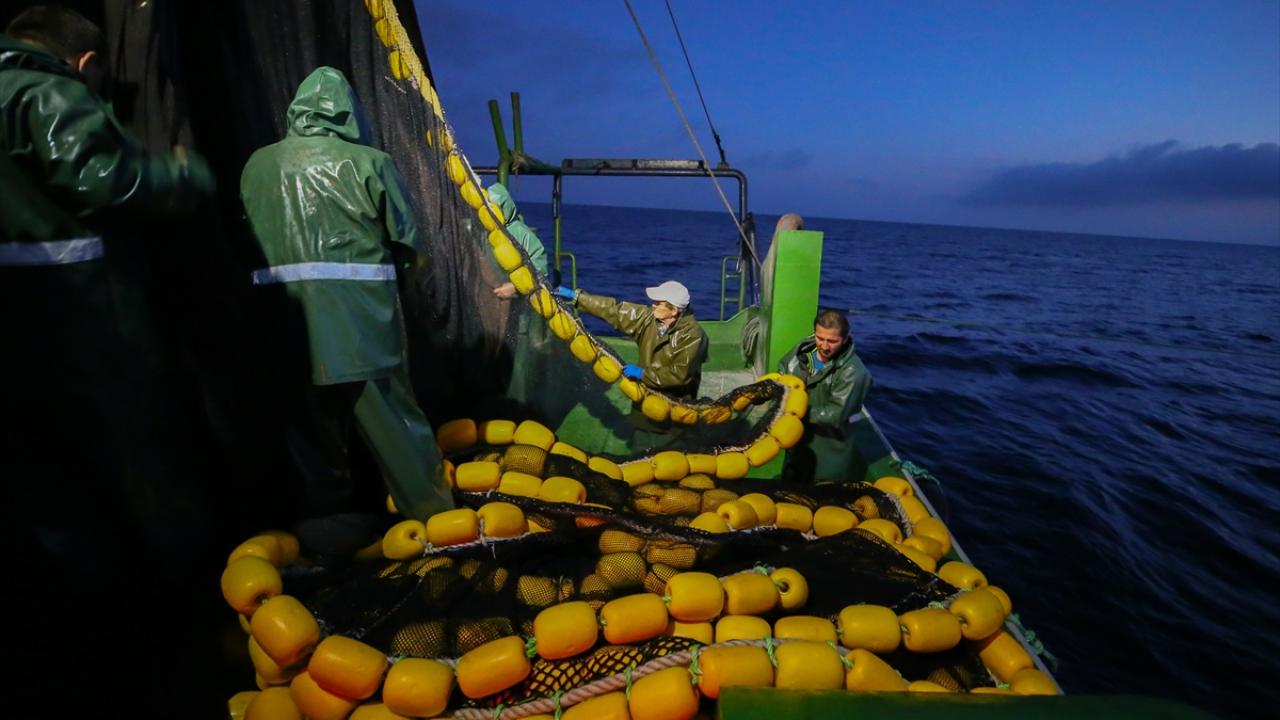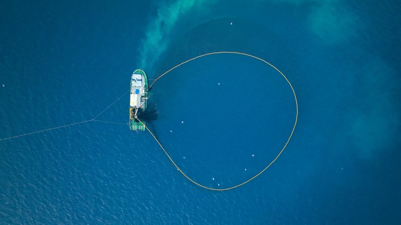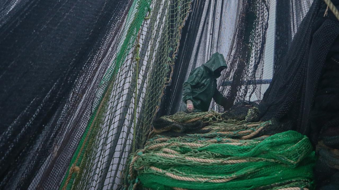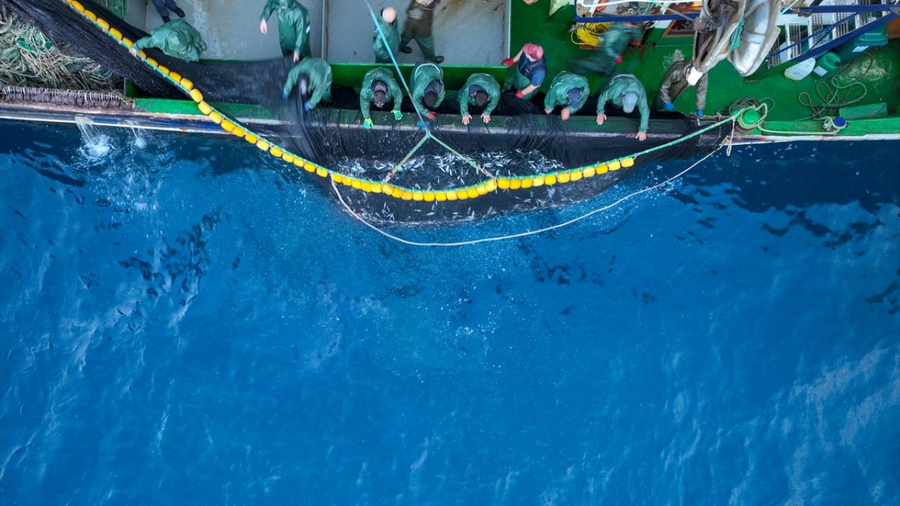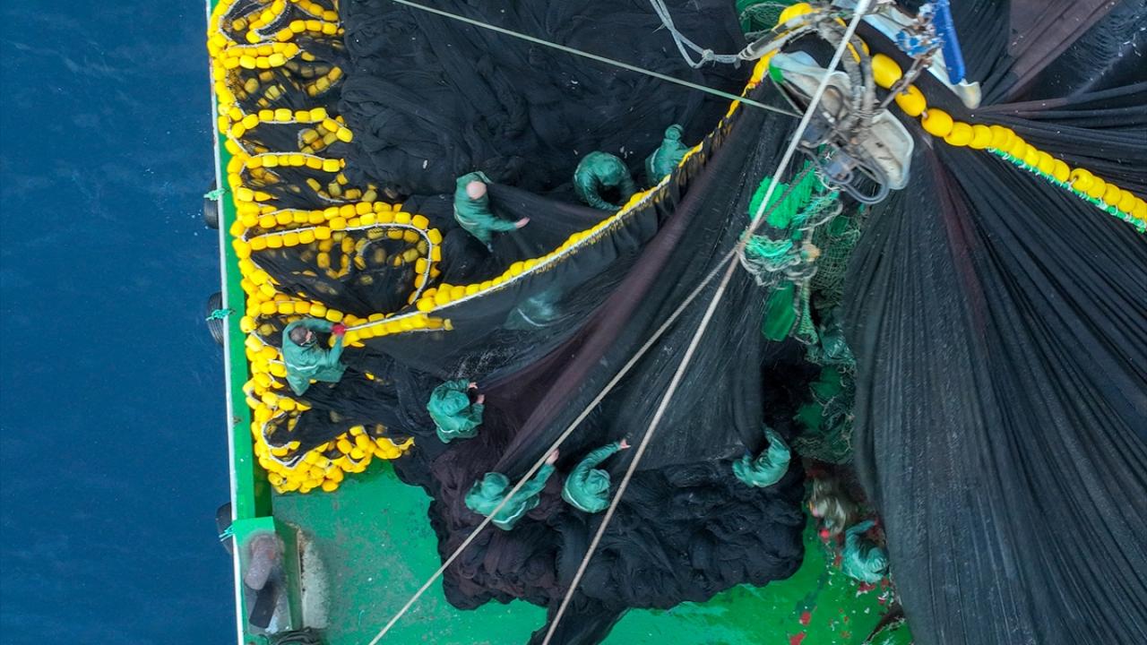 Hızla çalışmaya başlayan tayfa, ağı denizde sabitlemek için kullanılan botu suya indiriyor. Kaptanın talimatıyla tayfa ağları denize bırakıyor.