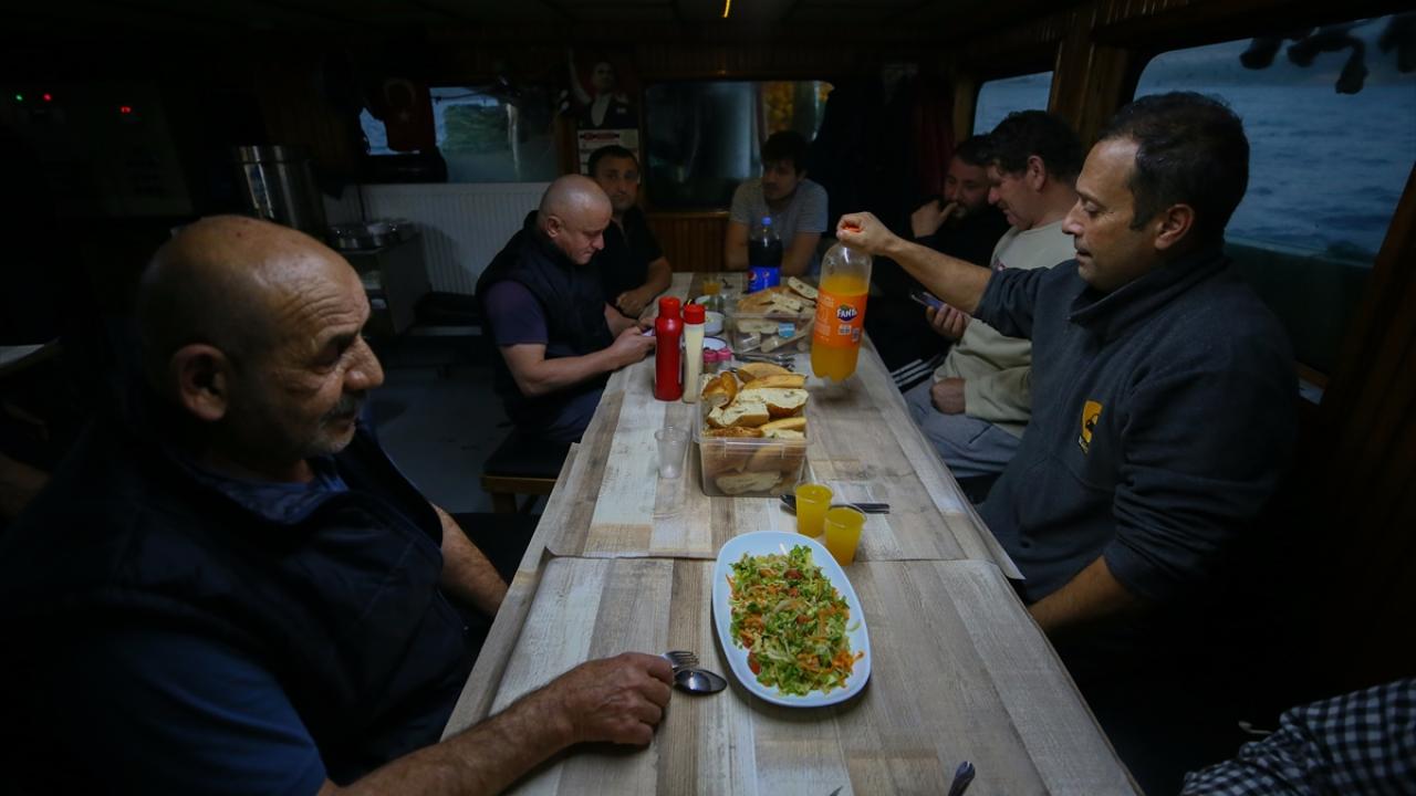 Saat 04.30`u gösterdiğinde ise bu kez sahur için hazırlıklar yapılıyor. Yemeklerini yiyen balıkçılar oruç için niyet edip, yeniden işe koyuluyor.