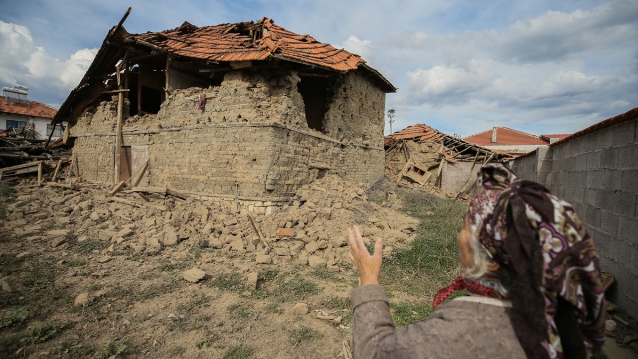 Karahöyük Mahallesinde bazı evlerde hasar oluştu. Depremde aralarında doğup büyüdüğü evin de bulunduğu 3 evi yıkılan 67 yaşındaki Fatma Akkan (fotoğrafta) üzüntü yaşadı.