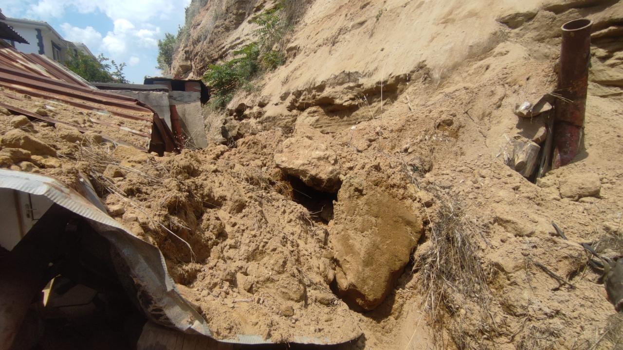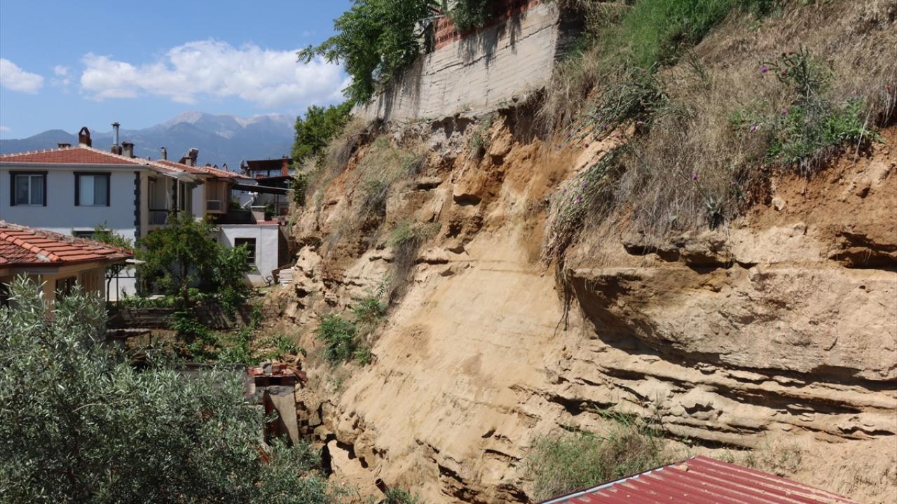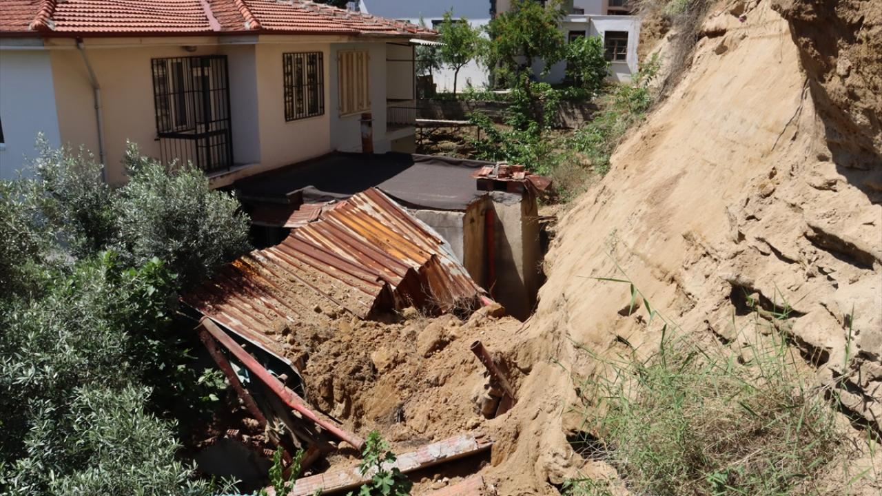 Geçen hafta etkili olan kuvvetli sağanak sırasında Mehmet Akif Ersoy Mahallesi`ndeki yamaçtan düşen kaya ve toprak parçaları 265 Sokak`taki iki evin bahçesine zarar verdi.