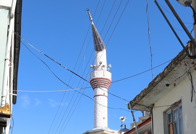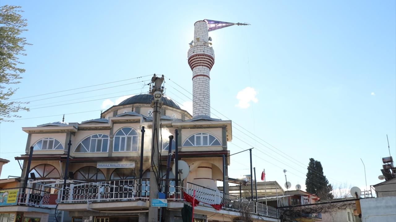 Pamukkale Mahallesi`nde de mahalle camisinin minaresinin külah bölümü sökülerek asılı kaldı.