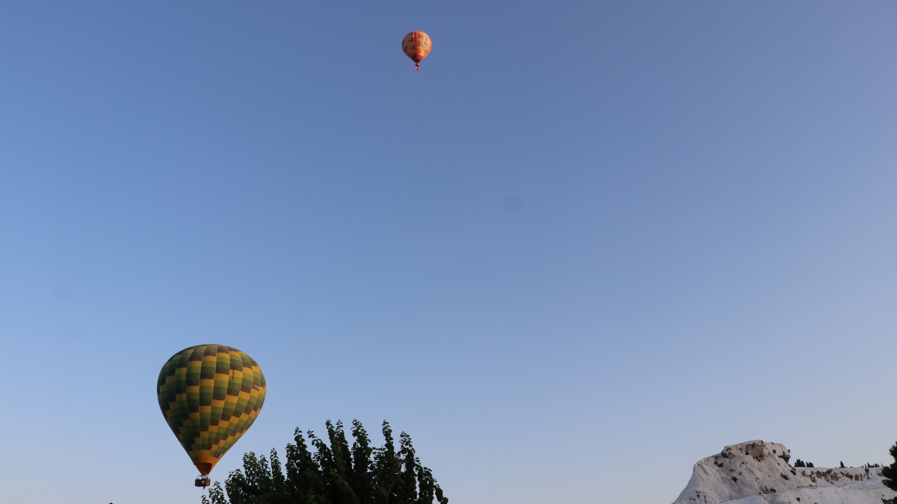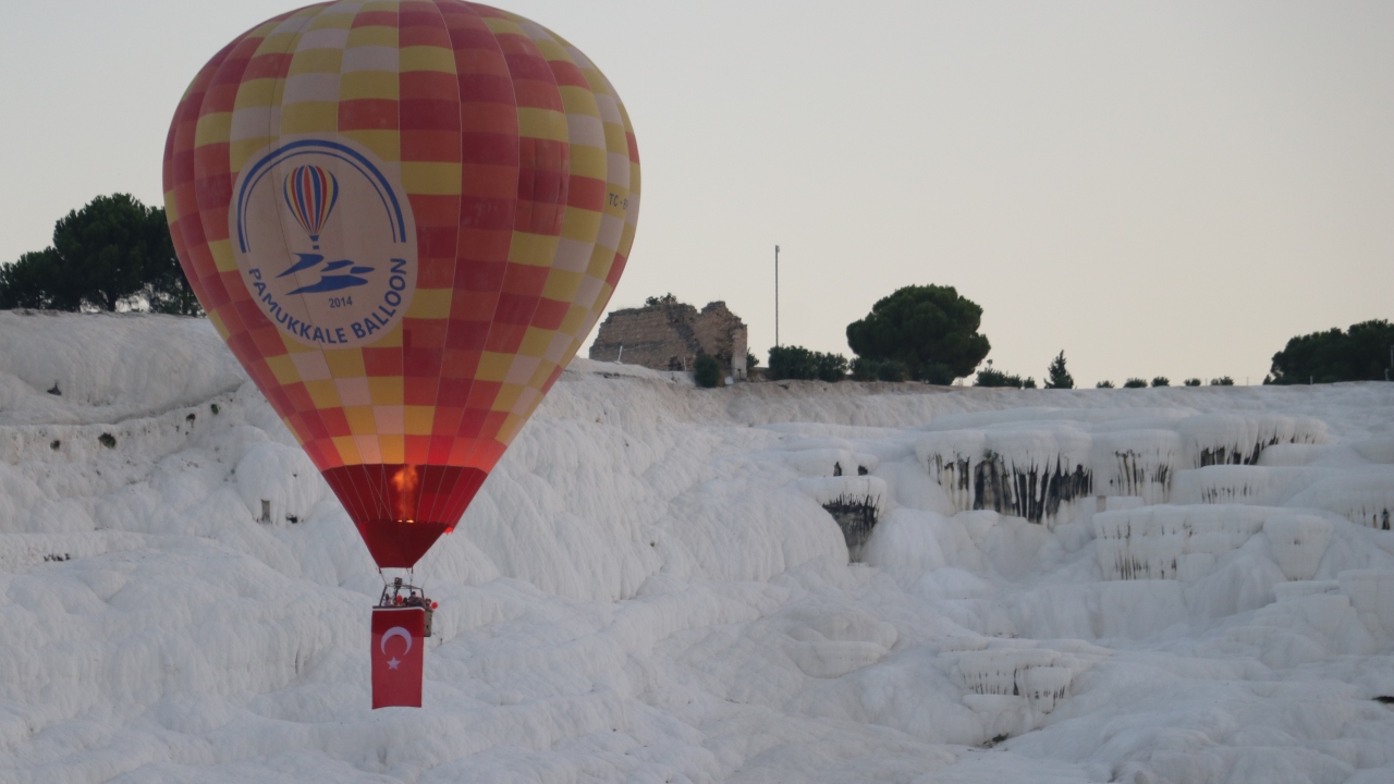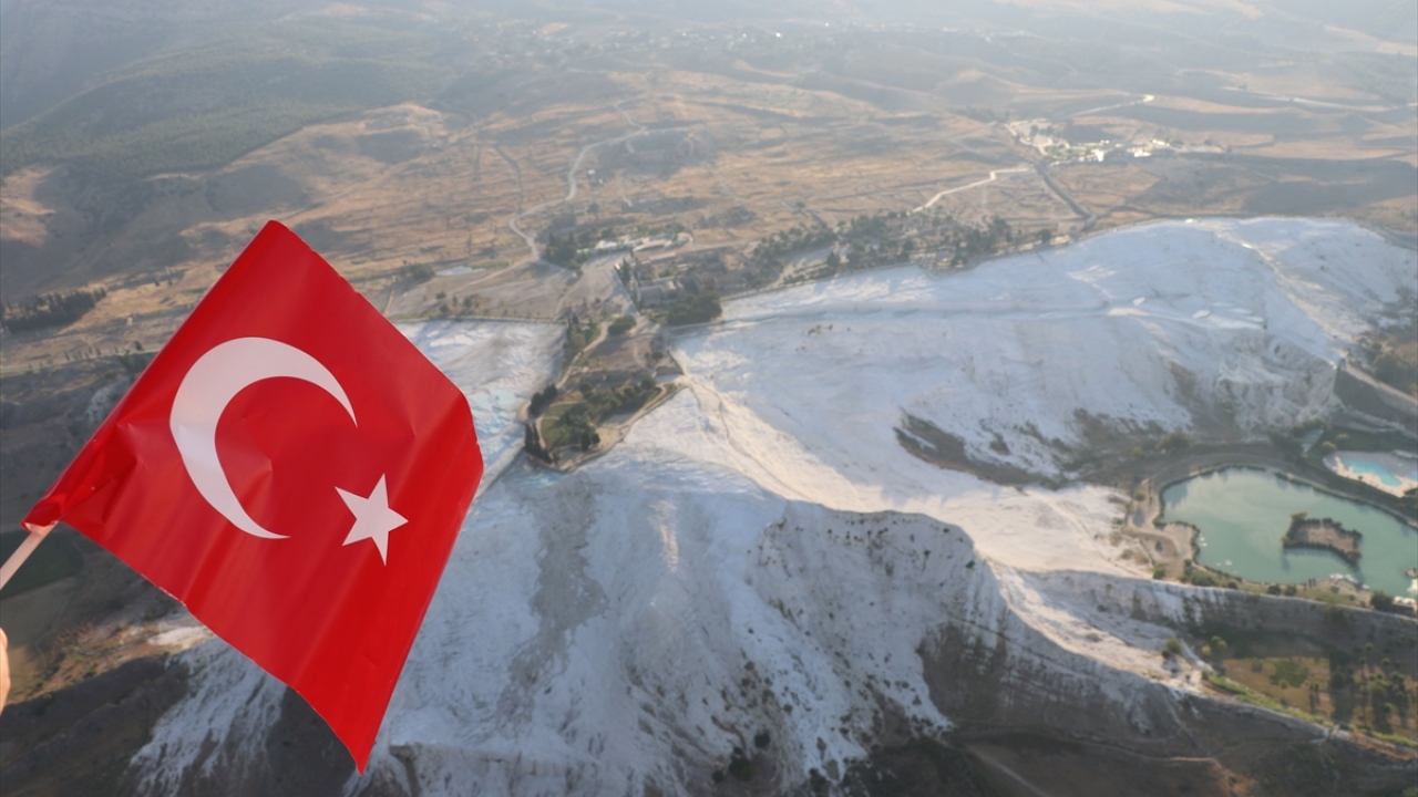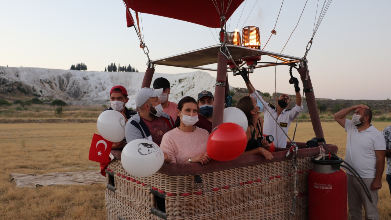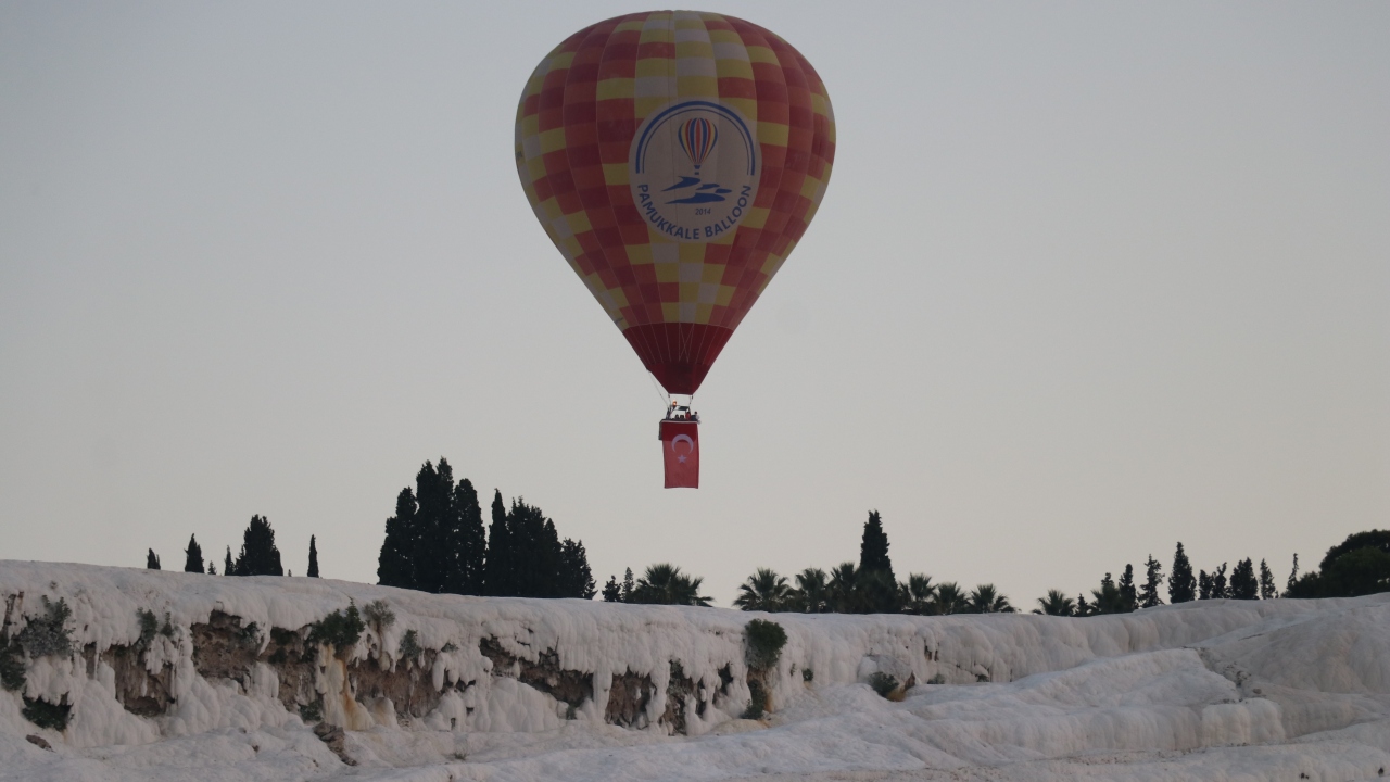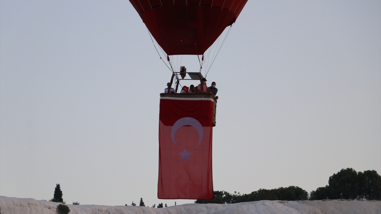 UNESCO Dünya Kültür Mirası Listesi'nde yer alan Pamukkale'de 30 Ağustos Zafer Bayramı dolayısıyla özel balon turu gerçekleştirildi.