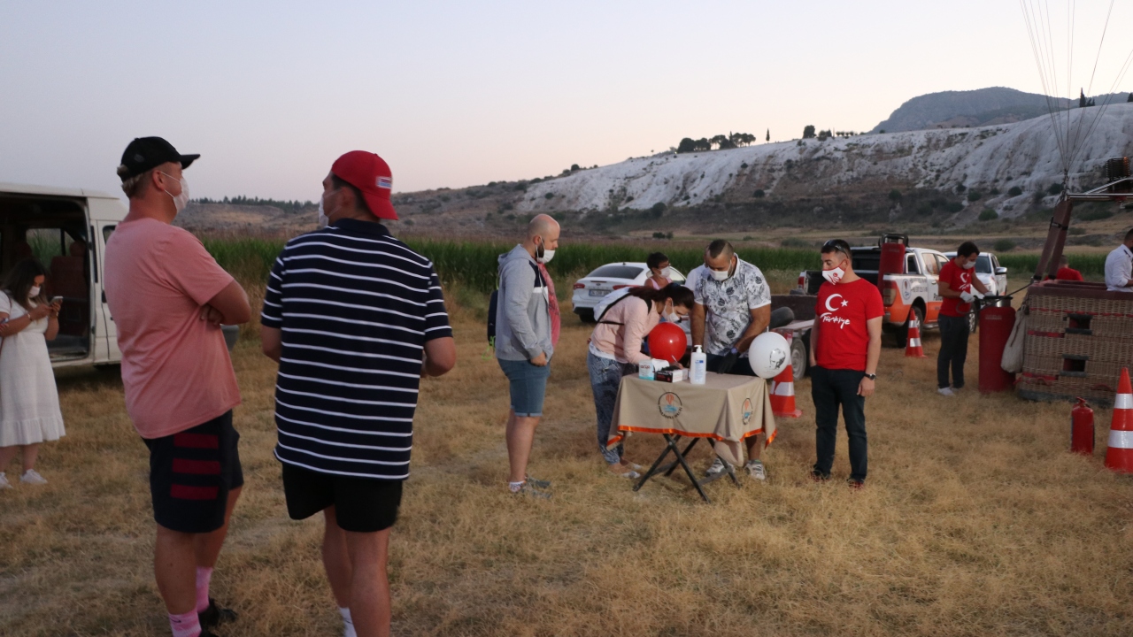 Türkiye`nin gözde turizm merkezlerinden Pamukkale`de yeni tip koronavirüs (Kovid-19) tedbirleri kapsamında 15 Mart`ta durdurulan ve 22 Ağustos`ta yeniden başlatılan sıcak hava balon uçuşlarına ilgi artarak devam ediyor.