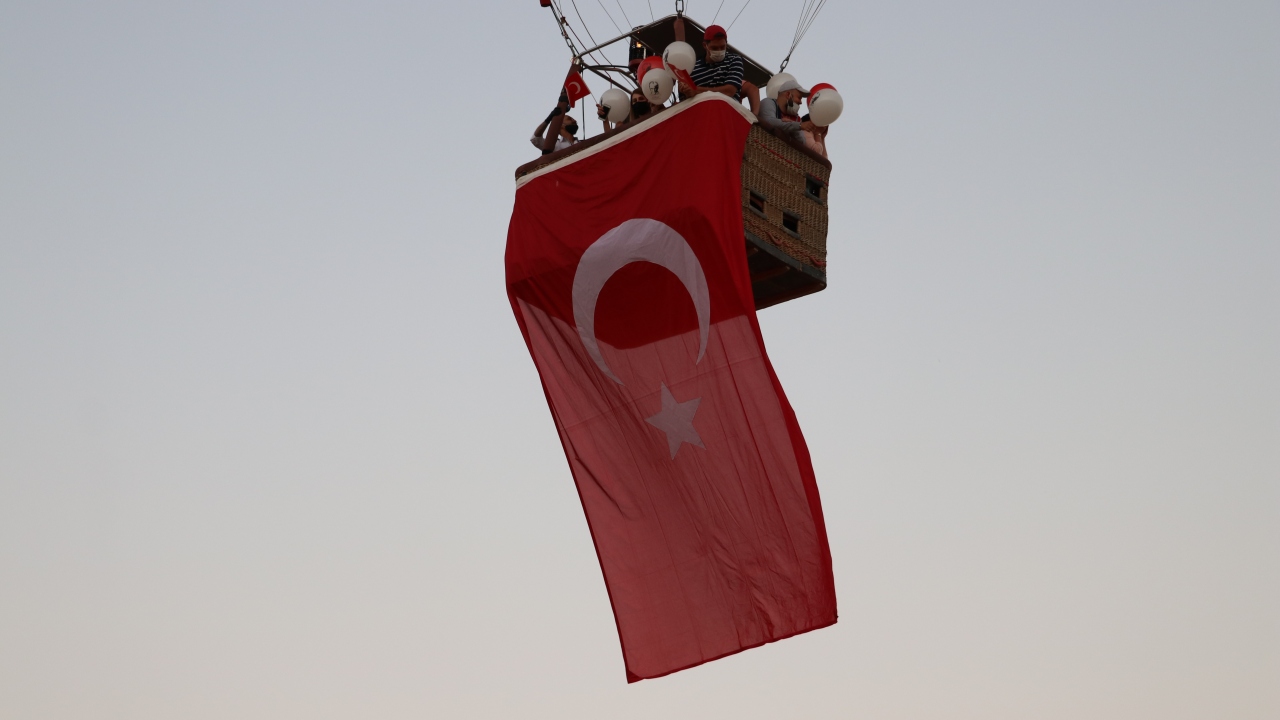 Balon turizminde faaliyet gösteren şirketin genel müdürü Muhammet Kaplan, AA muhabirine, 30 Ağustos Zafer Bayramı dolayısıyla özel uçuş gerçekleştirdikleri için gururlu olduklarını söyledi.