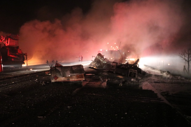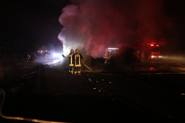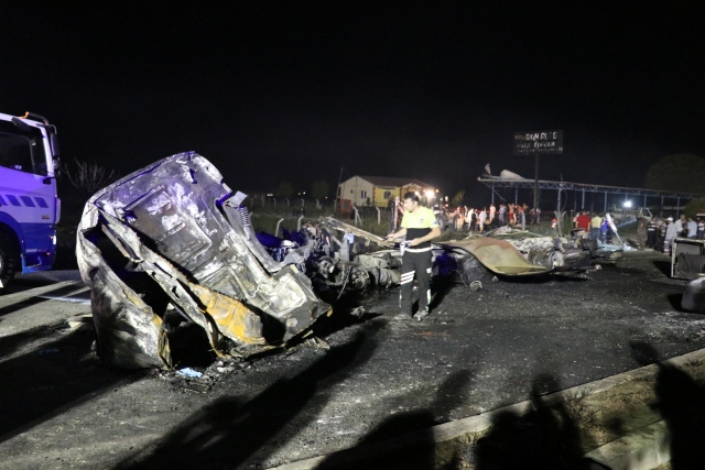 Denizli'nin Sarayköy ilçesindeki orman yangınını söndürme çalışmaları için dozer taşıyan tırla çarpışan yakıt tankerinde yaşanan patlama sonucu ilk belirlemelere göre 3 kişi öldü, 4 kişi yaralandı.