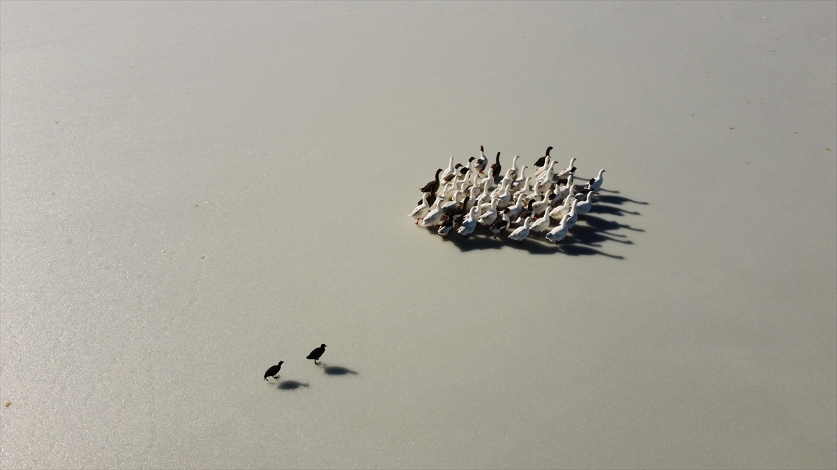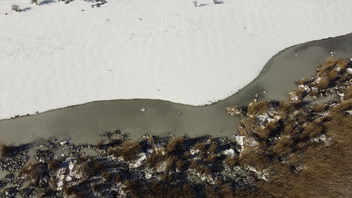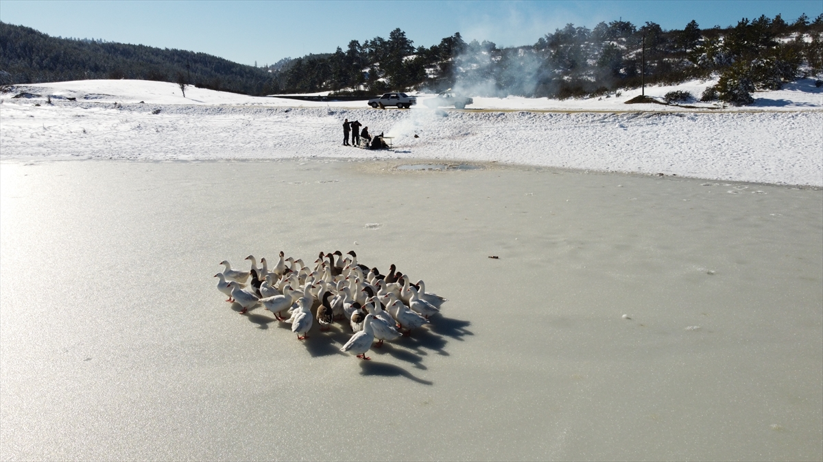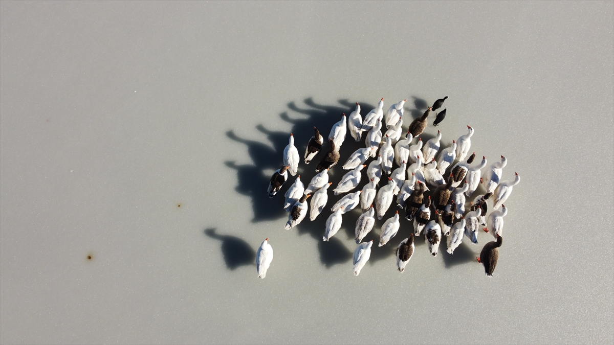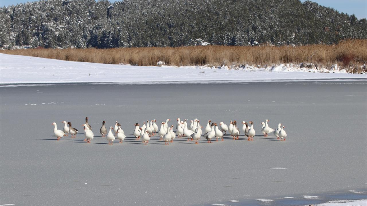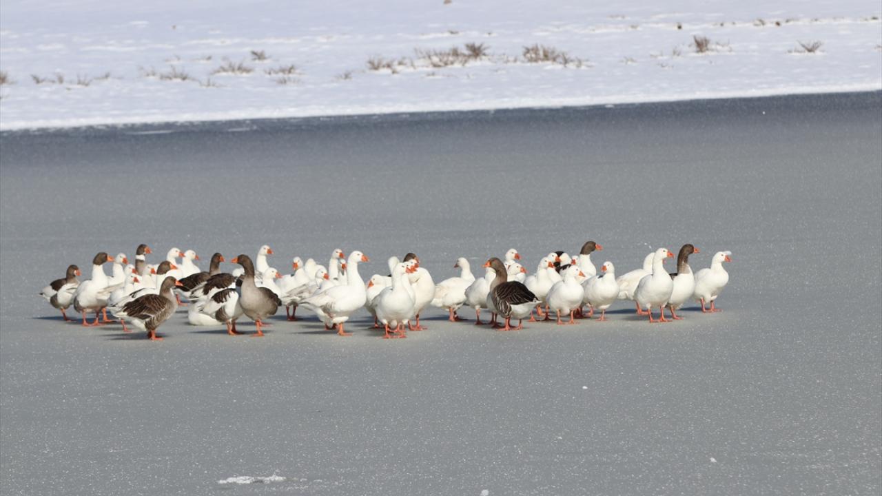 Buz üstünde yiyecek arayan yaban kazları da güzel görüntüler oluşturdu.