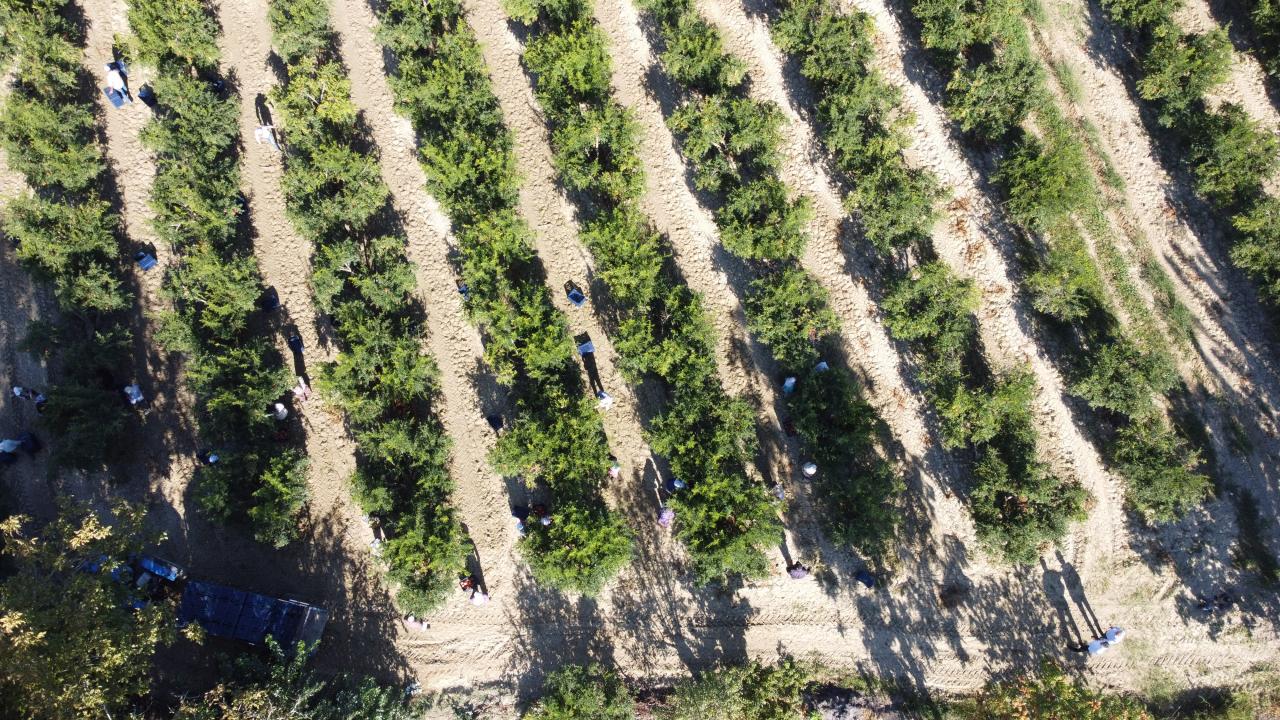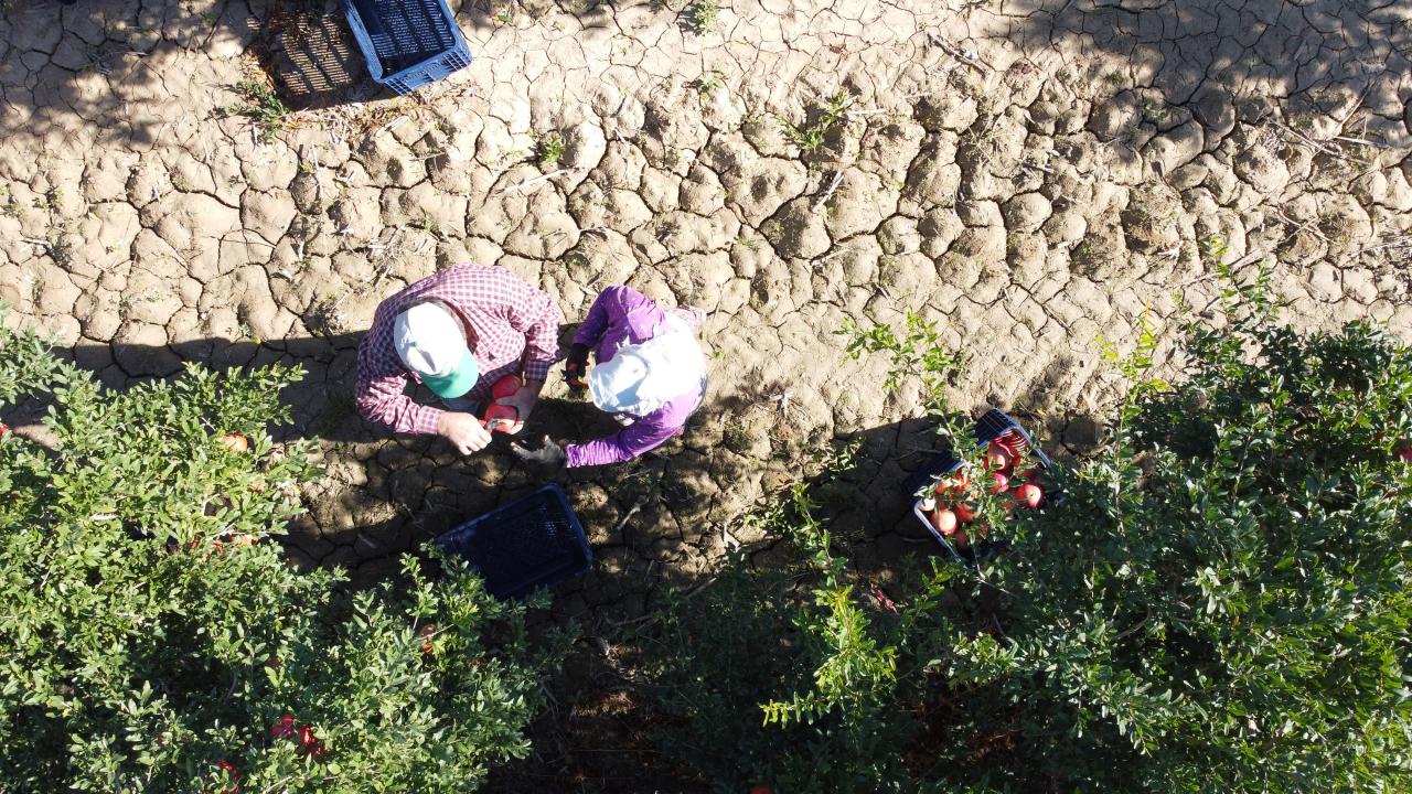 Sabah erken saatlerde tarlalara gelen işçiler gün boyu devam eden hasatta, her biri 1 kilogramı bulan narları özenle toplayıp, firmalar aracılığıyla iç ve dış pazara gönderiyor.