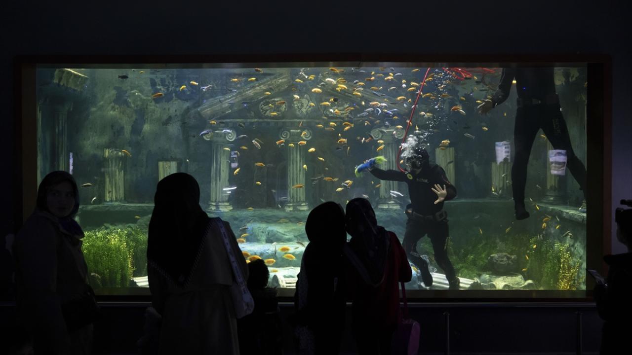 Beslemenin yanında akvaryumun temizliğini de üstlenen dalgıçlar, canlıların dengesini bozmadan yapay bir ortamda onlara habitat sağlamaya çalışıyor.