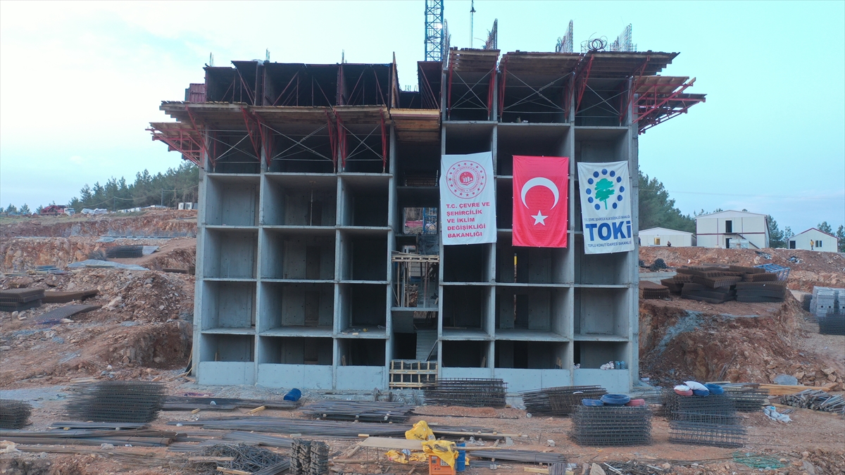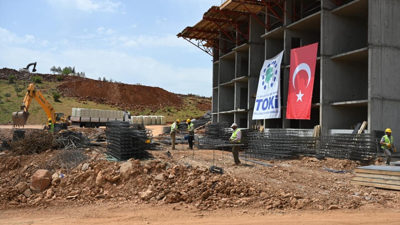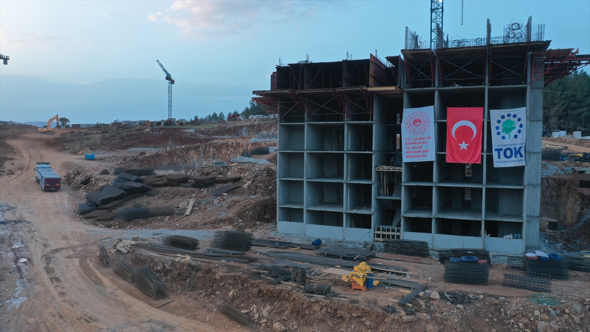 Merkez üssü Pazarcık ve Elbistan ilçeleri olan 6 Şubat`taki depremlerden en fazla etkilenen yerleşim birimleri arasındaki ilçede, Çevre, Şehircilik ve İklim Değişikliği Bakanlığına bağlı Toplu Konut İdaresi Başkanlığı (TOKİ) tarafından temeli atılan kalıcı konutların bir blokunun kaba inşaatında sona gelindi.