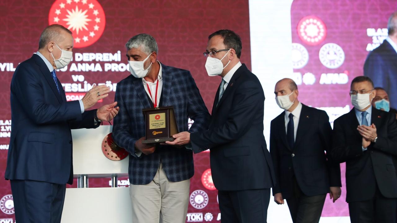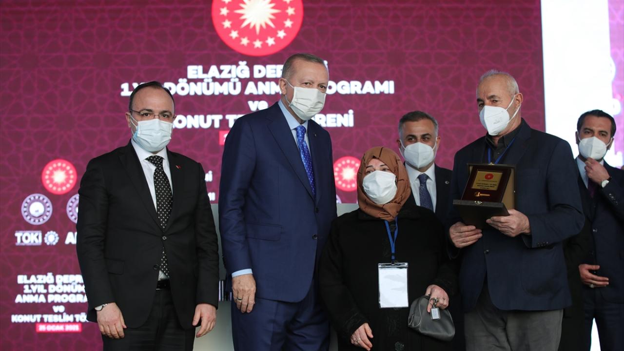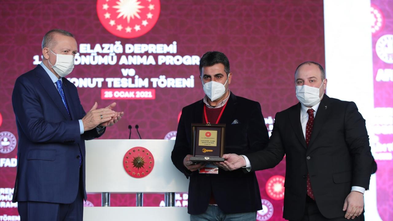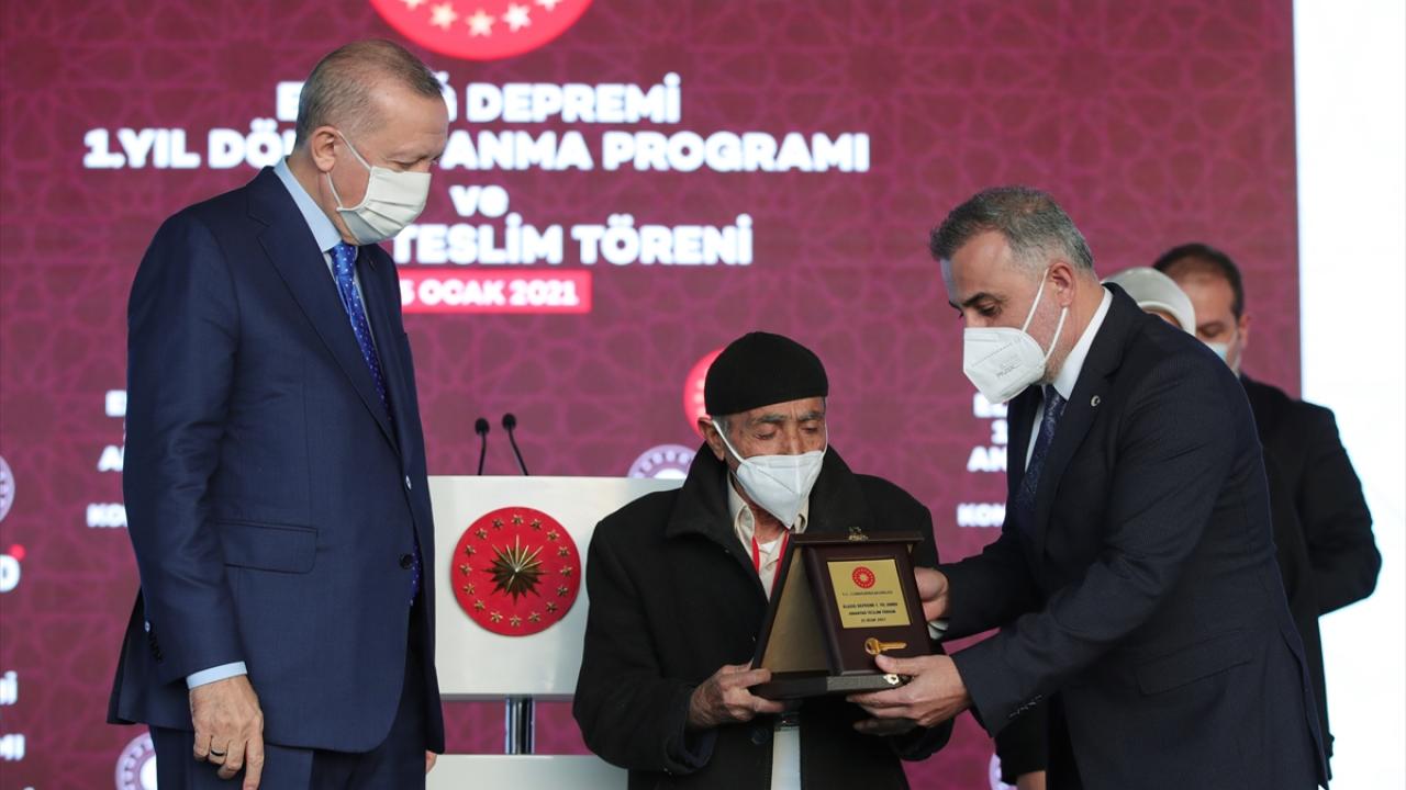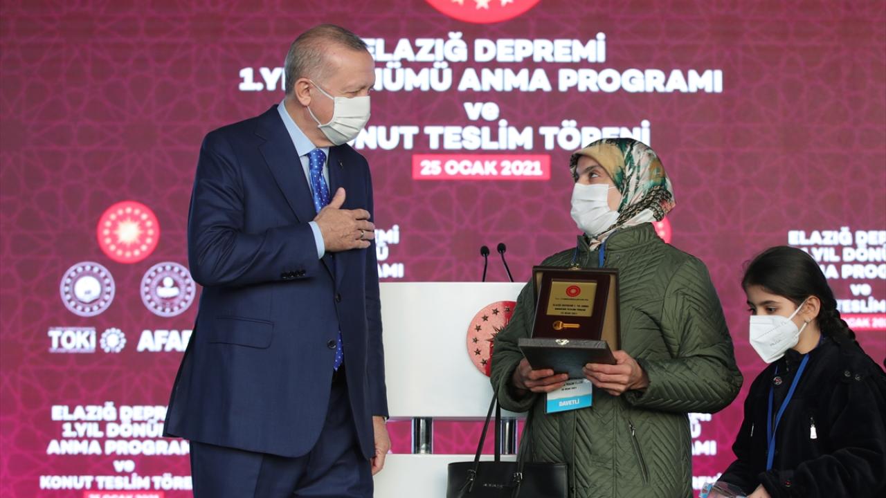 Türkiye Cumhurbaşkanı Recep Tayyip Erdoğan, Yazıkonak'ta Elazığ depreminin birinci yıl dönümü nedeniyle düzenlenen anma ve deprem konutları anahtar teslim törenine katıldı.