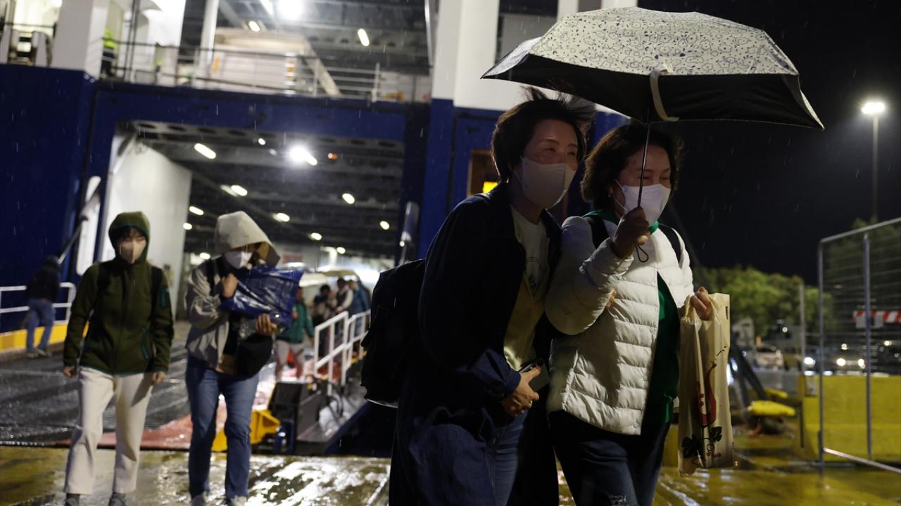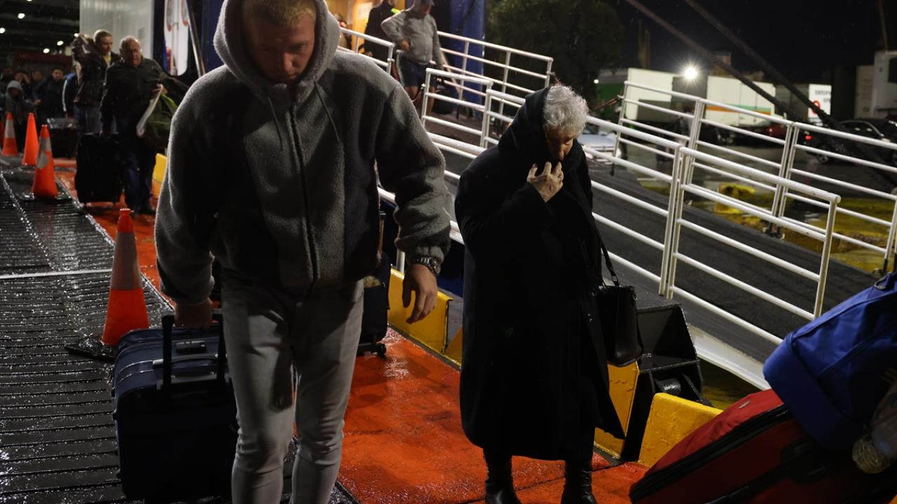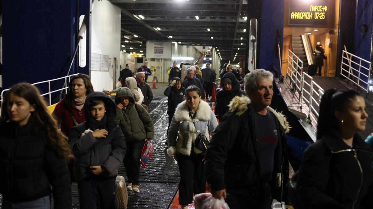 Ege adalarında artan sismik hareketlilikle birlikte alınan tedbirler sonrası Yunan adası Santorini'den tahliye edilen vatandaşlar feribot ile Pire Limanı'na ulaştı.