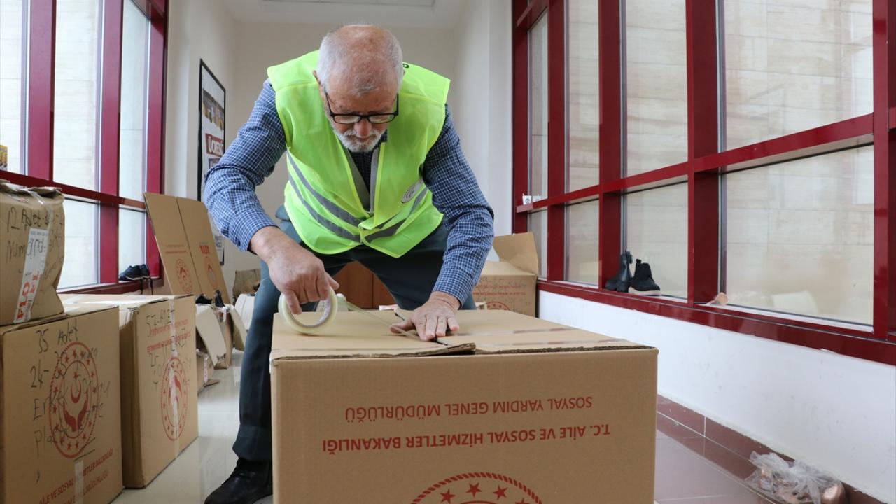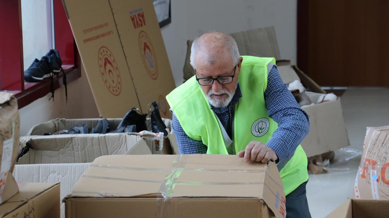 Gaziosmanpaşa Belediyesince Kahramanmaraş Sütçü İmam Üniversitesinde oluşturulan yardım deposunda gönüllü çalışan Kara, burada kıyafet ve ayakkabıları bedenlerine göre ayırıyor.