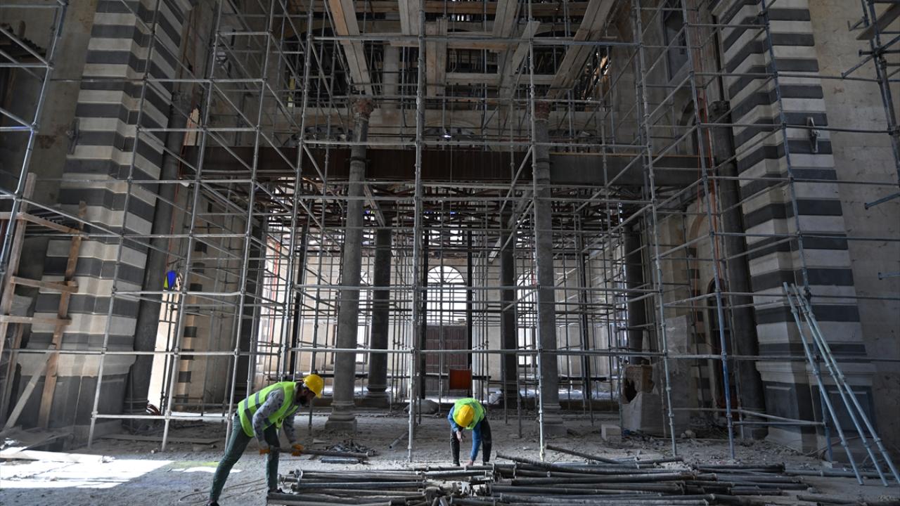 Valide Meryem Kilisesi olarak 1892 yılında yaptırılan ve bir süre cezaevi olarak kullanıldıktan sonra 1960 yılında camiye dönüştürülen yapının restorasyon çalışmaları hassasiyetle yürütülüyor.