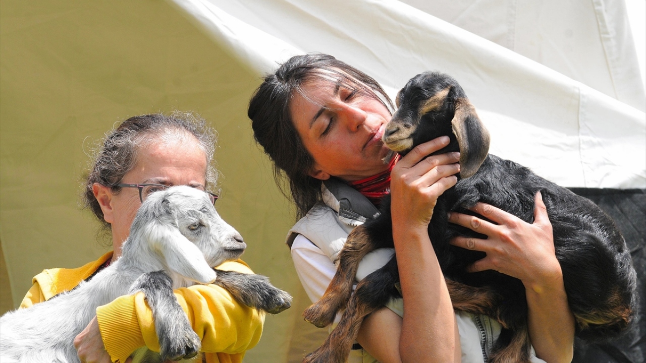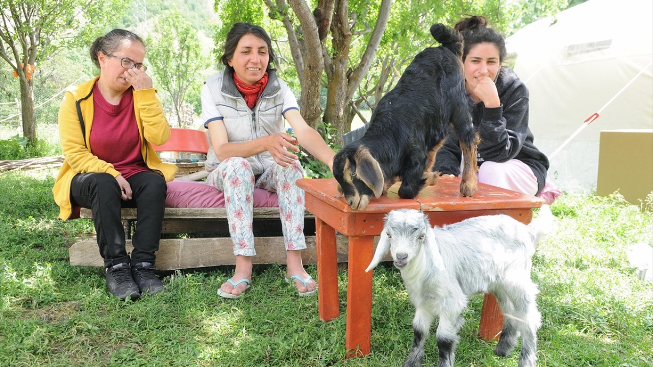 "Keçi yavruları isimleriyle çağırınca geliyorlar. Çevremizde koşuşturuyorlar, şu an tek neşe kaynağımız bunlar. Onlarla stres atıyoruz. Deprem şokunu atlatmaya çalışıyoruz. Depremin ilk günü diğer keçilerin sütlerinden beslemeye çalıştık sonra temin ettiğimiz biberonla besliyoruz. Keçilerden süt sağıp her gün öğlen akşam besliyoruz. Zaten acıktıkları zaman yanımıza geliyorlar. Biz de karınlarını doyuruyoruz. Barınakları yıkıldığı için çadırda bizimle kalıyorlar."