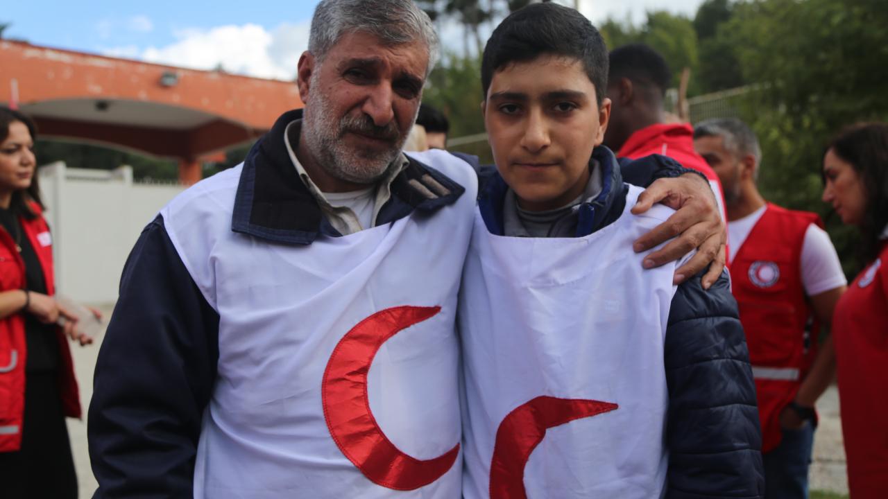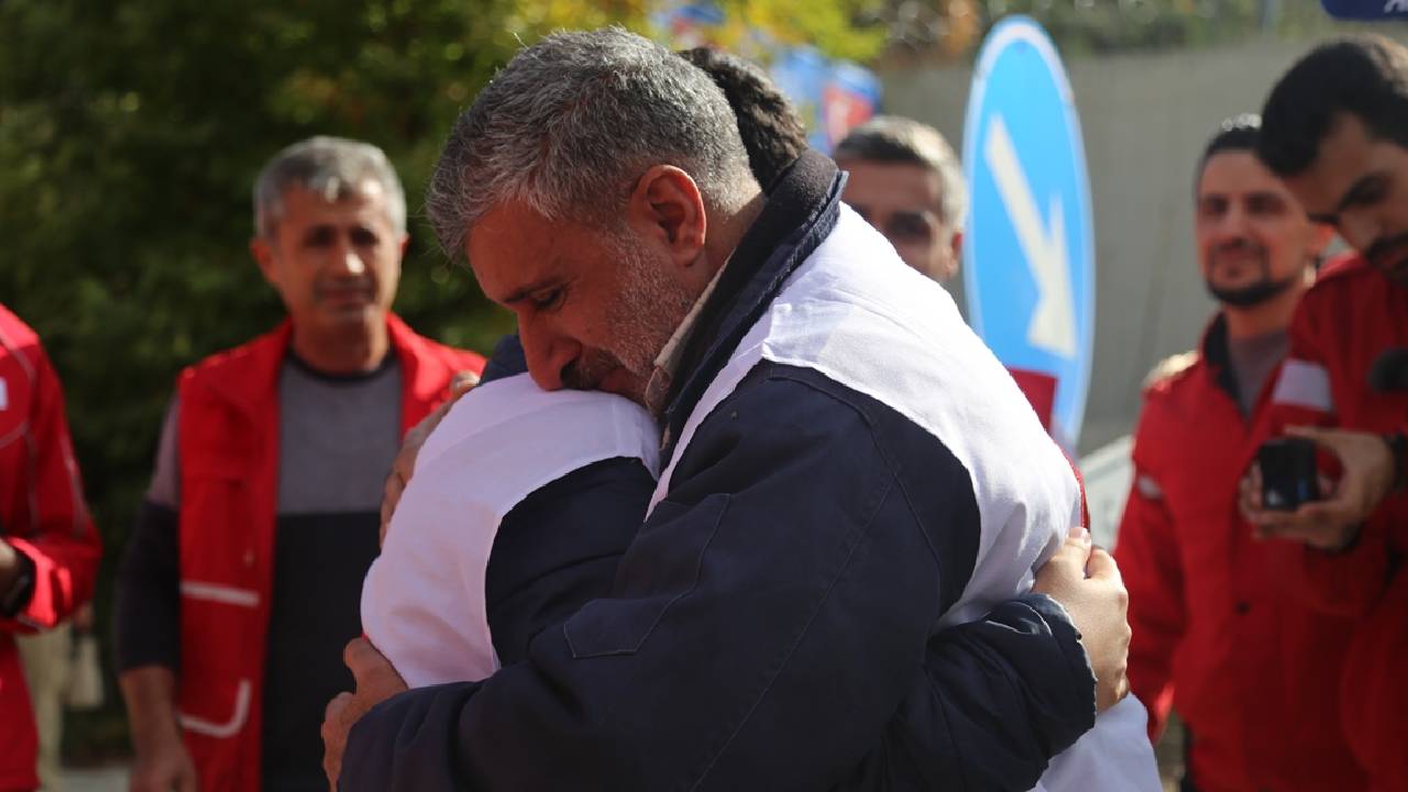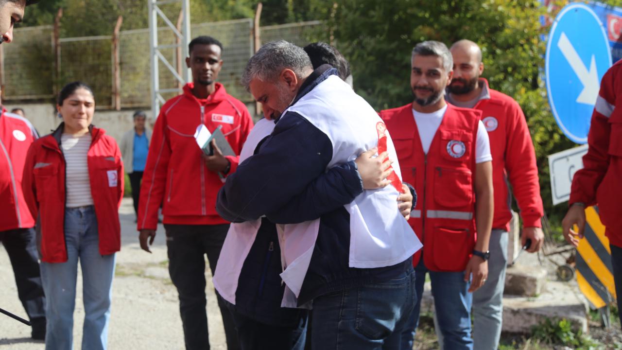 Türk Kızılay ekibi Ahmet Selbah`ı alarak Yayladağı Sınır Kapısı`na getirilen babası Mustafa Selbah ile buluşturdu.