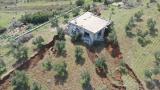 Deprem bölgesindeki bir ev, arazide oluşan yarığa gömüldü