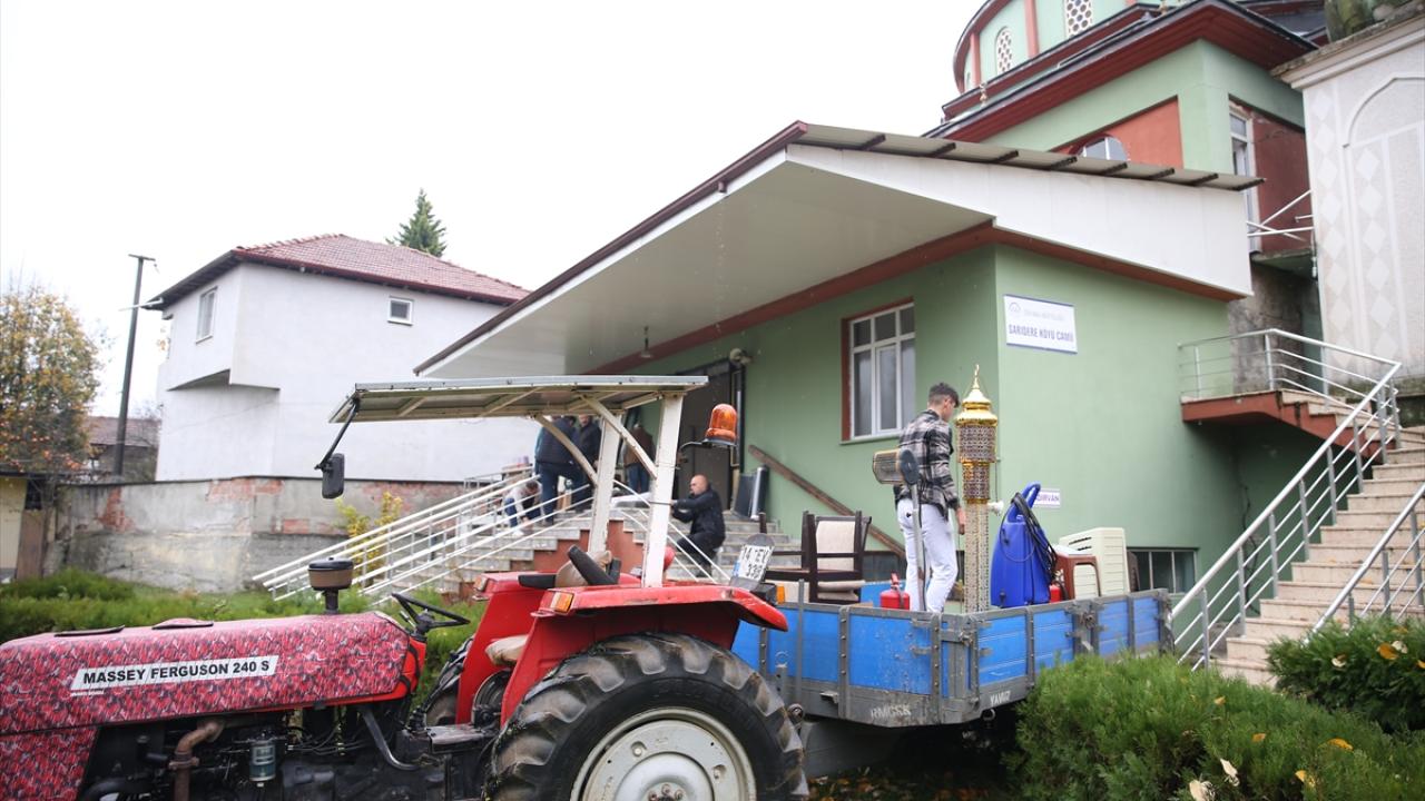 Düzce'nin Gölyaka ilçesinde depremde hasar gördüğü için ibadete kapatılan ve yıkım kararı verilen Sarıdere Köyü Camii'ndeki eşyaların boşaltılmasına başlandı.