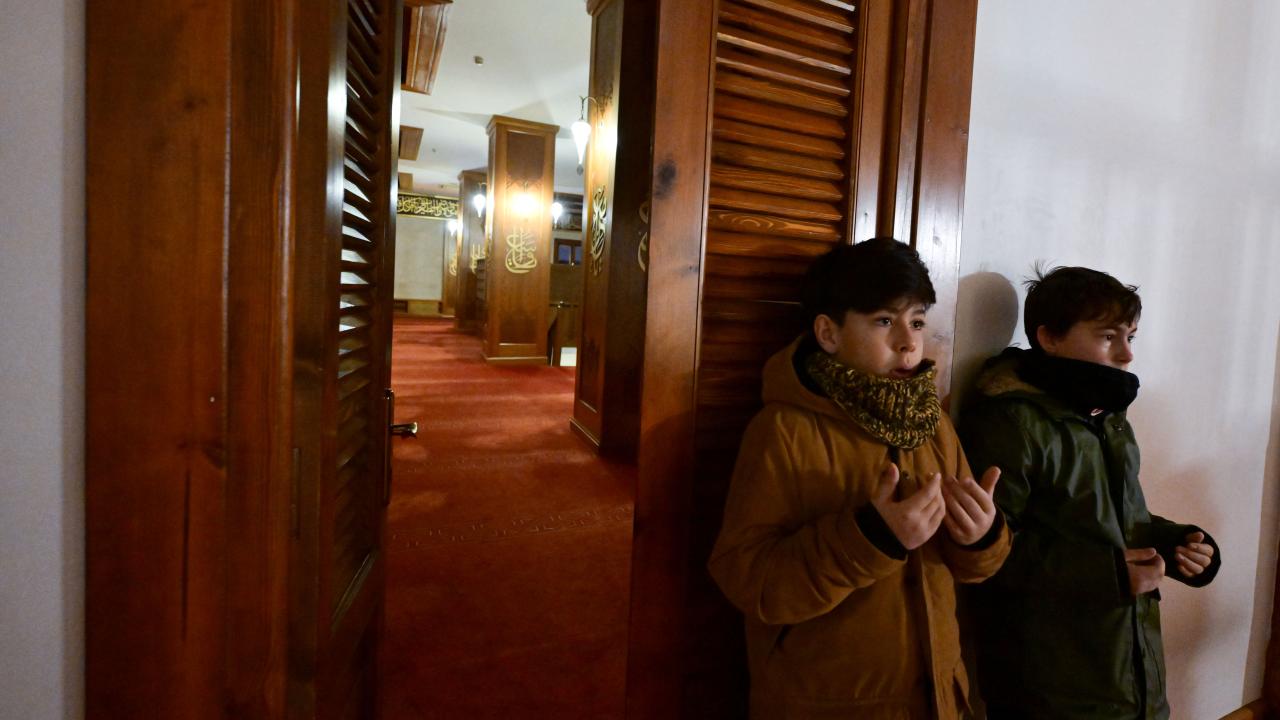 Ankara`da Hacı Bayram Veli Camii`nde 6 Şubat`taki Kahramanmaraş merkezli depremlerde yaşamını yitirenler için sabah namazında Yasin-i Şerif okundu, dua edildi.
