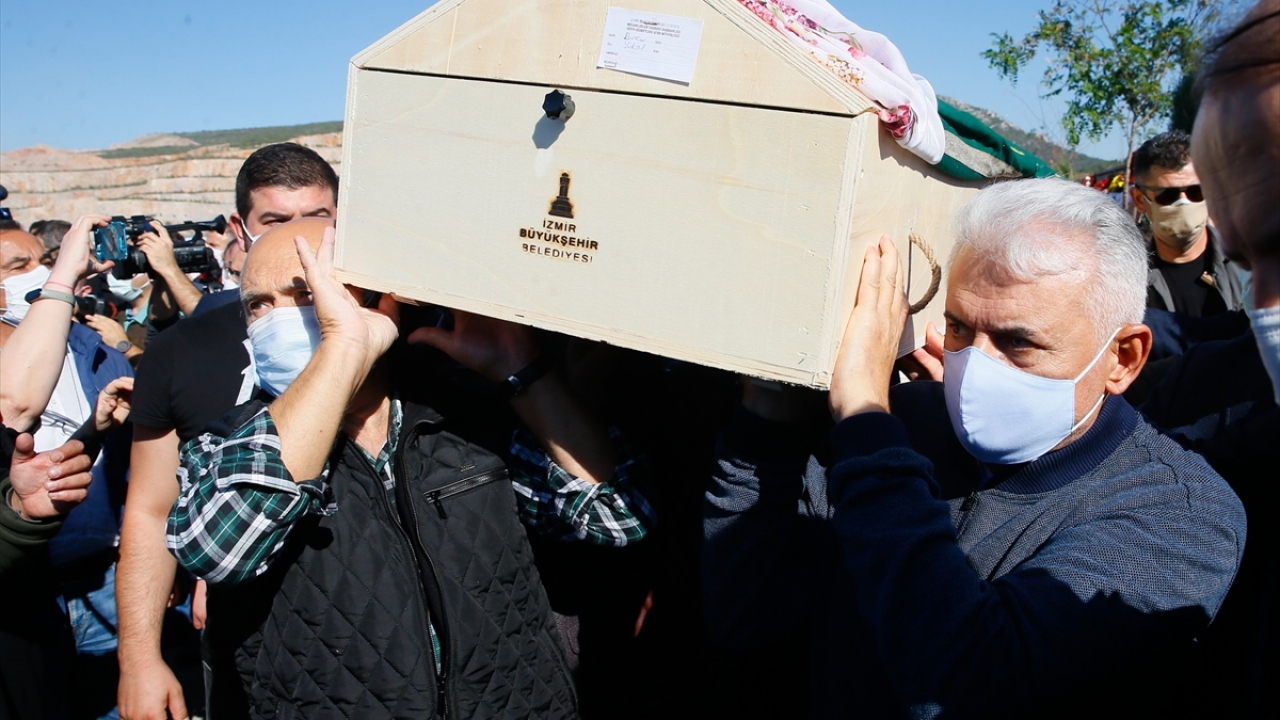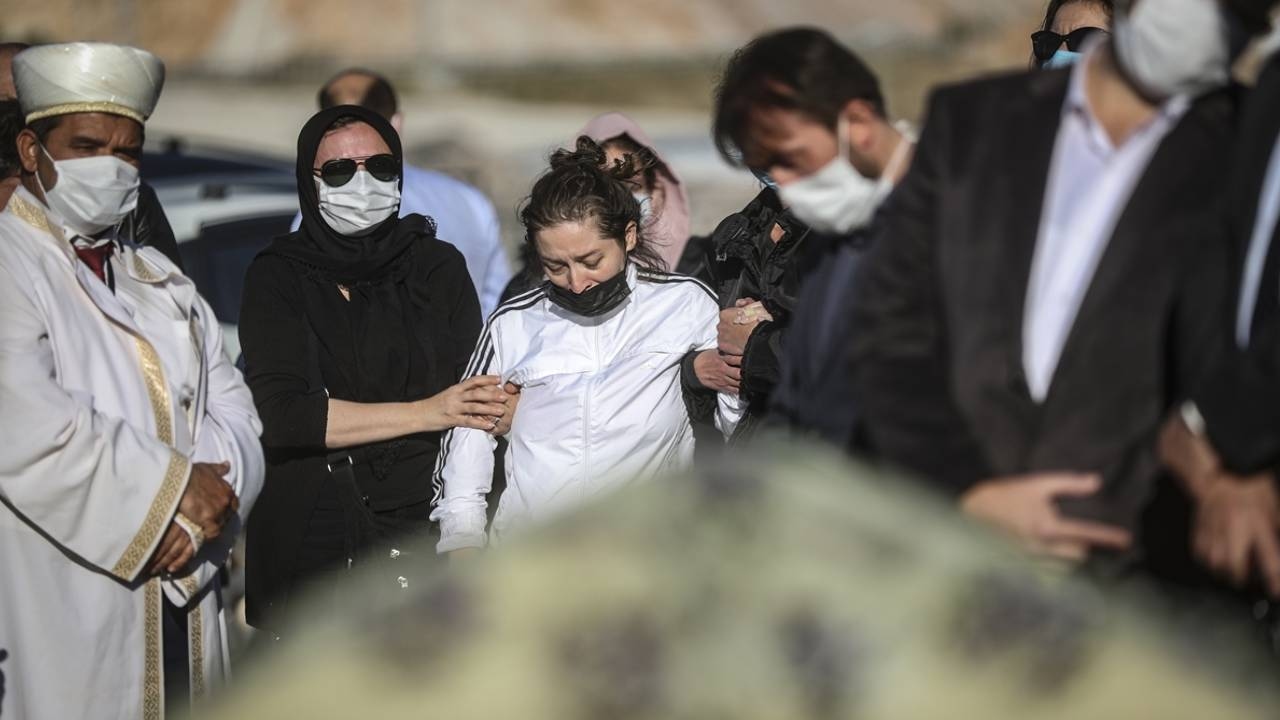İzmir`de dün meydana gelen 6,6 büyüklüğündeki depremde hayatını kaybeden diş hekimi Burcu Yüksel ile çocukları Ege Ilgaz ve Dila Yüksel`in cenazeleri toprağa verildi.