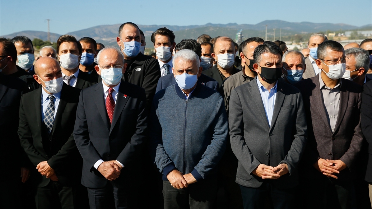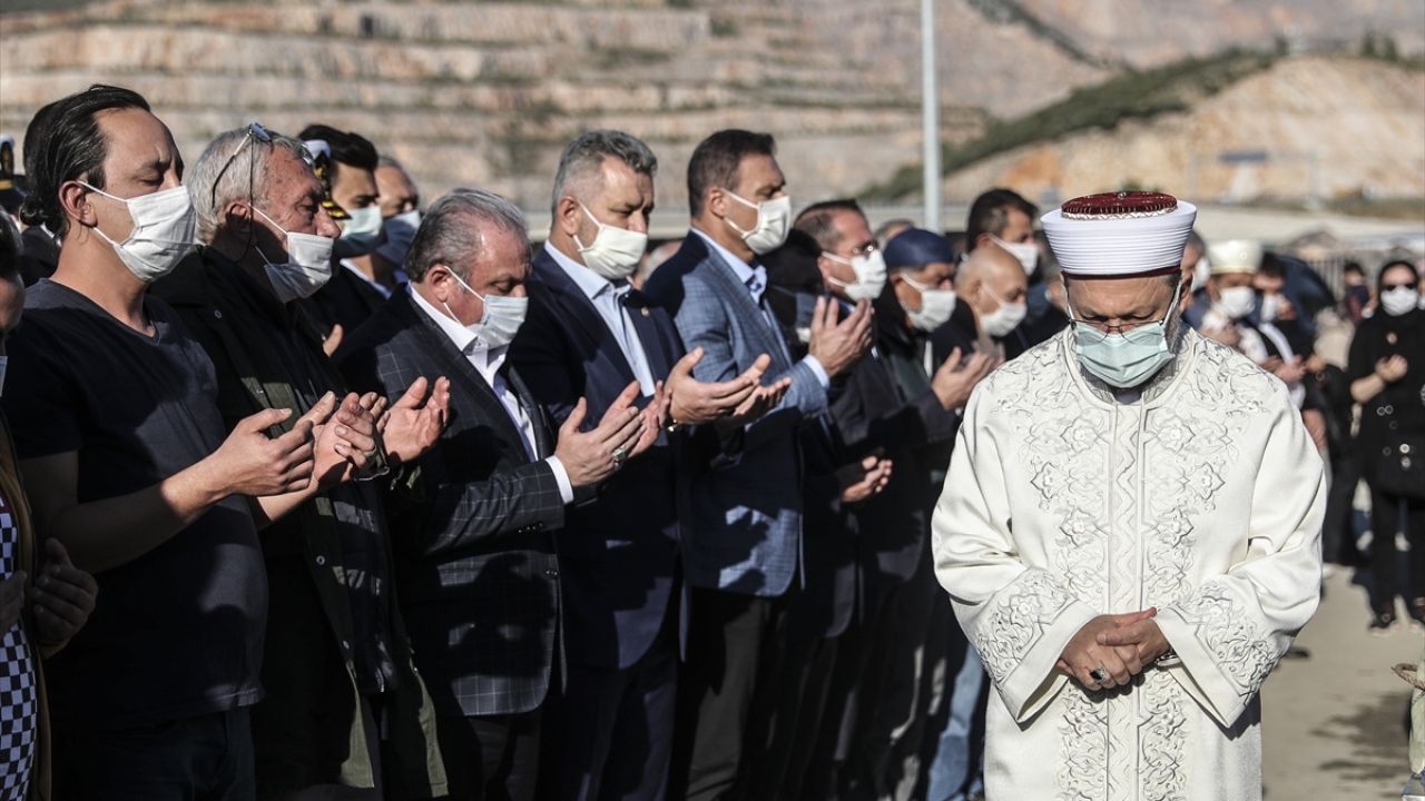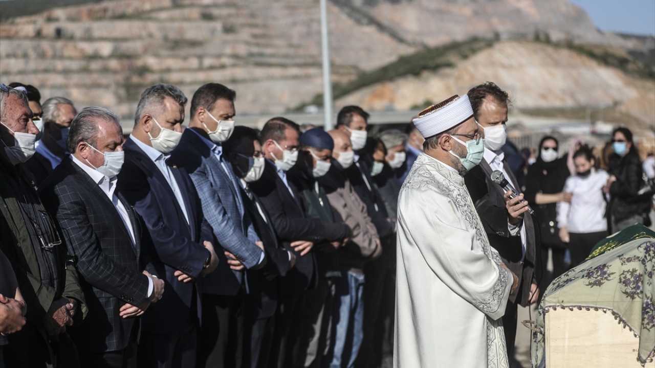Ege Denizi`nde Seferihisar açıklarında dün saat 14.51`de meydana gelen depremde yaşamını yitiren Burcu Yüksel ile çocukları Ege Ilgaz ve Dila Yüksel`in Bornova Hacılarkırı Mezarlığı`ndaki cenaze namazını Diyanet İşleri Başkanı Ali Erbaş kıldırdı.