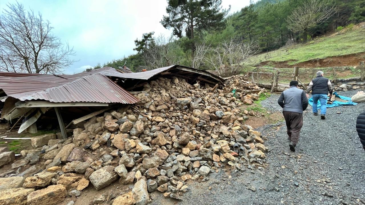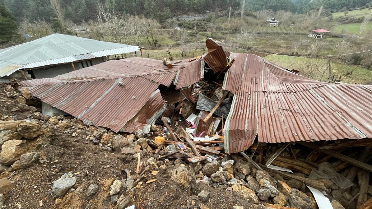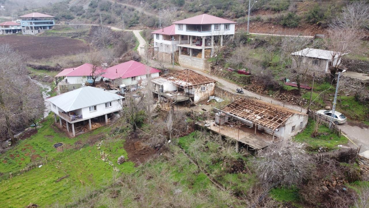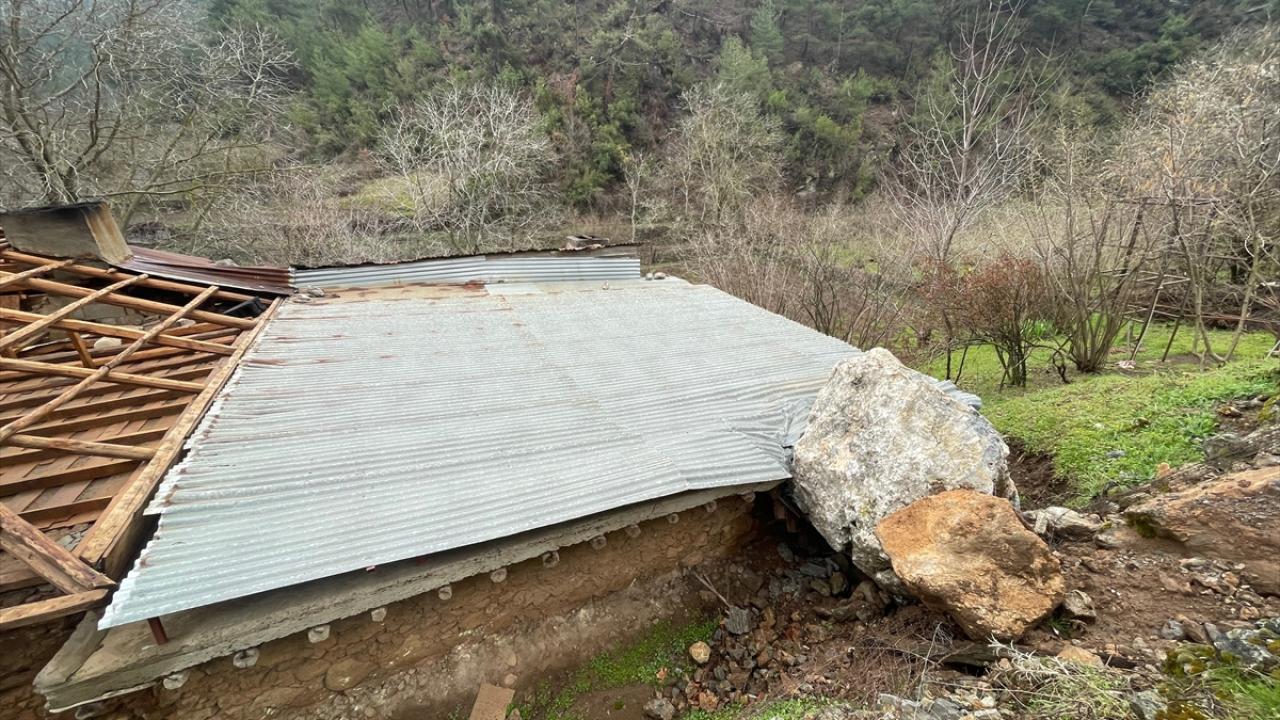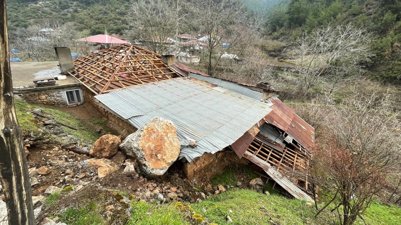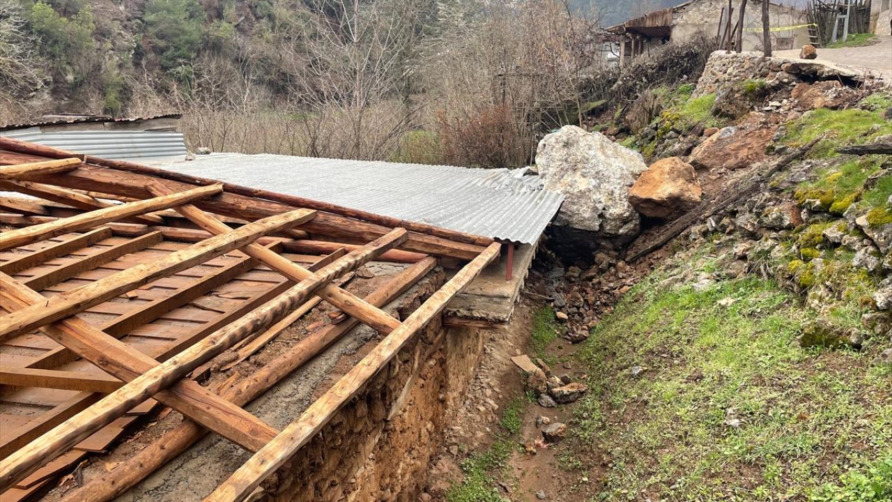 Depremde kopan kayaların zarar verdiği köydeki 27 ev boşaltıldı