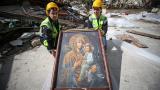 Depremde yıkılan kilisenin enkazından çok sayıda ikona ve İncil çıkarıldı