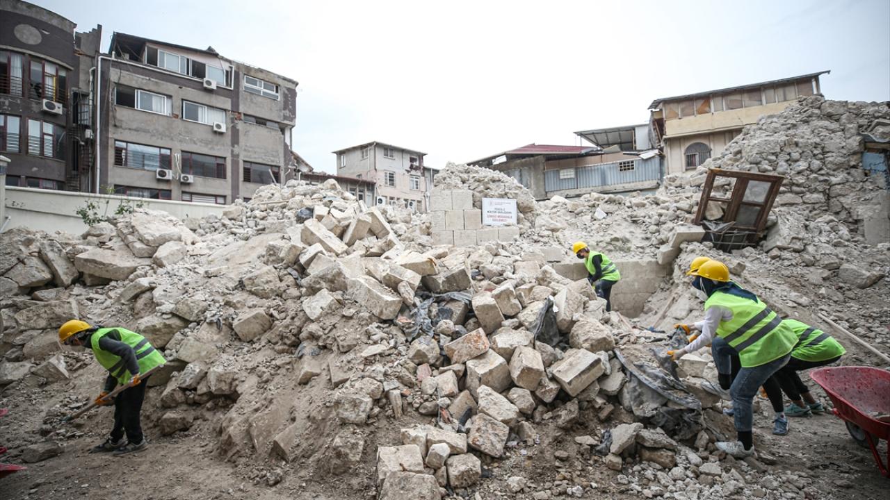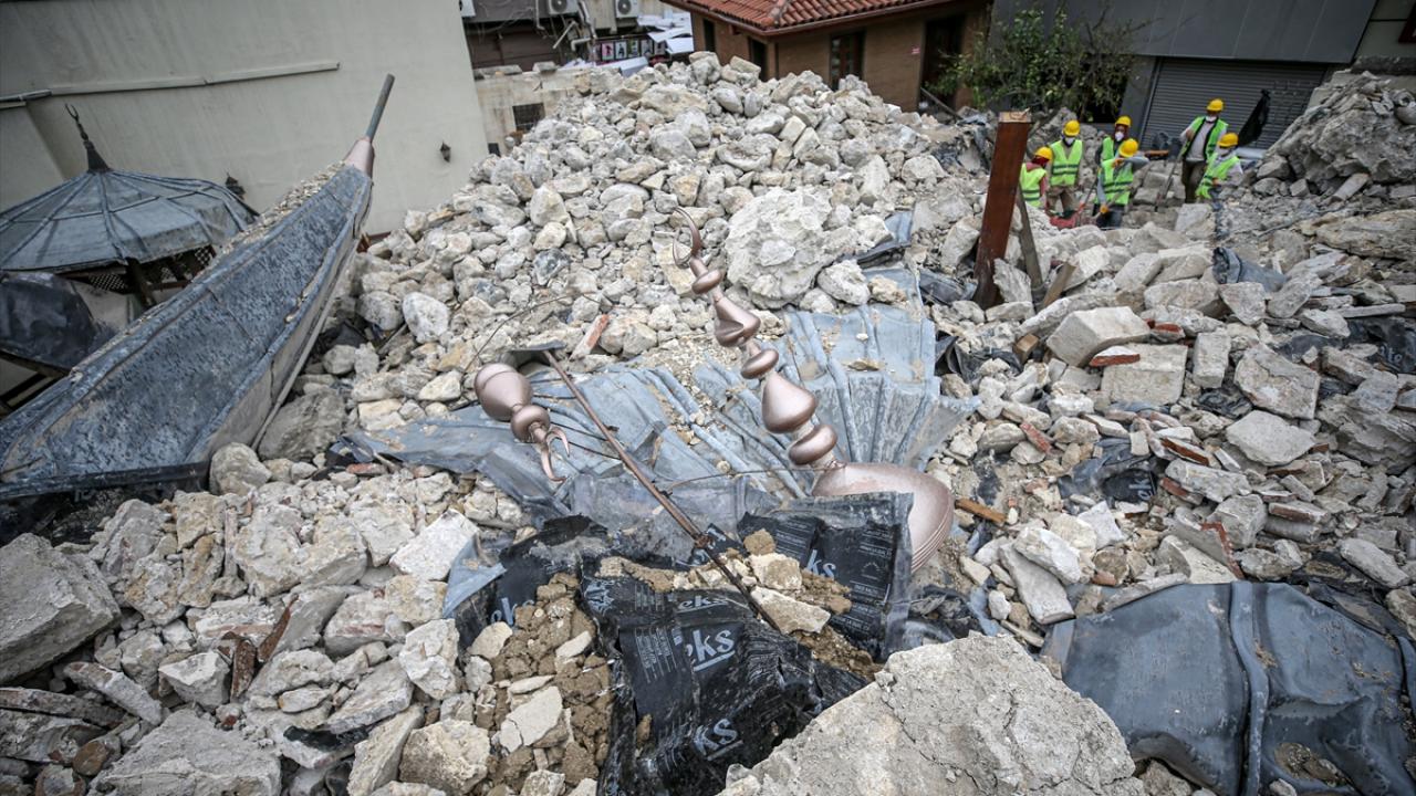 Kültür ve Turizm Bakanlığı bünyesinde kurulan Afet Bölgesi Kazı Başkanlığına bağlı ekipler, tarihi yapının parçalarını enkazdan kurtarmaya çalışıyor.
