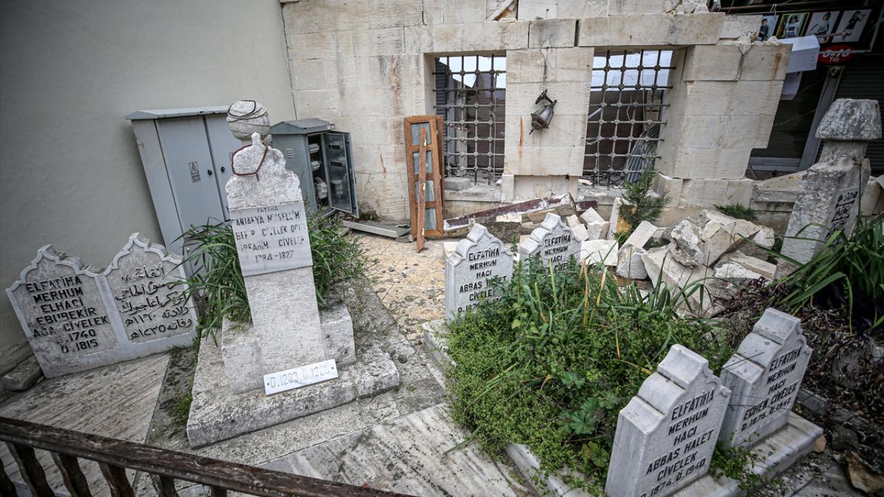 Avlusunun içinde mezarlar da bulunan caminin sütun, kitabe, mihrap ve minber süslemeleri de afetin etkisiyle enkaza dönüştü.