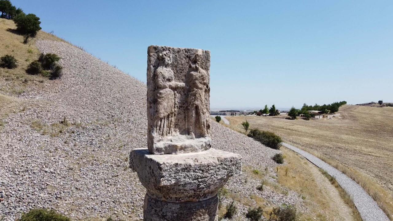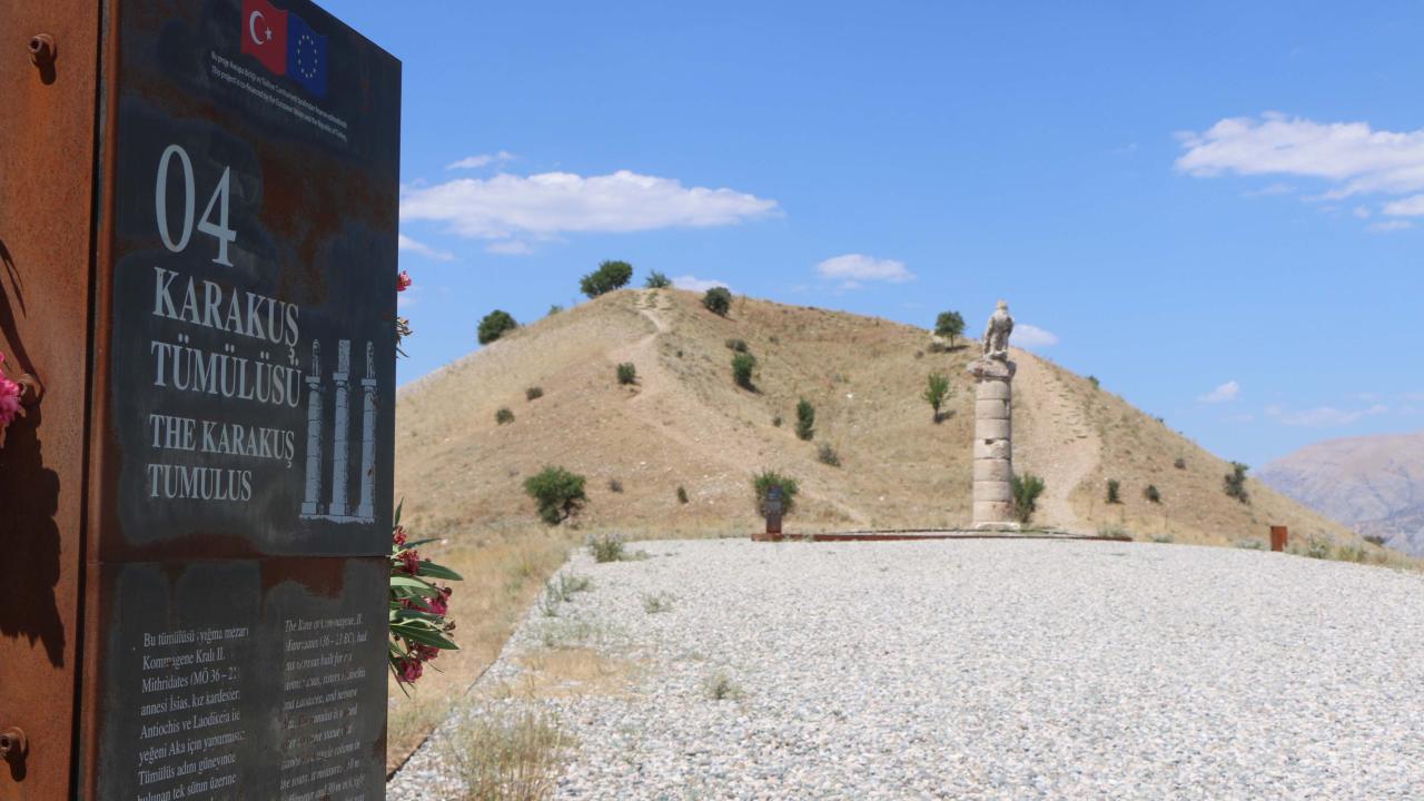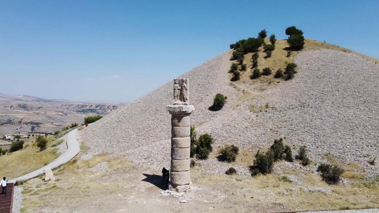 Adıyaman'nın Kahta ilçesinde 6 Şubat'ta Kahramanmaraş merkezli depremlerde yıkılan Karakuş Tümülüsü'ndeki 'Tokalaşma Sütunu', restore edilip, tekrar ziyarete açıldı.
