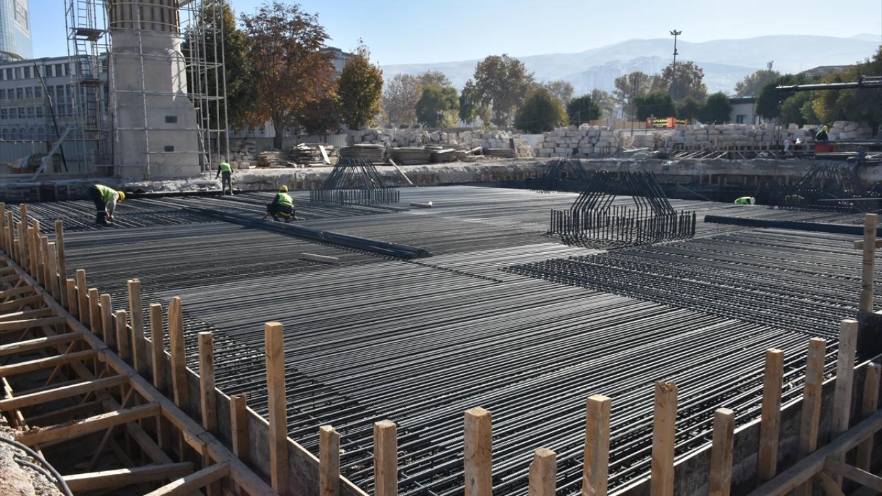 Malatya'nın simgelerinden olan ve 2020'deki Elazığ depreminde hasar alan, 6 Şubat 2023'teki Kahramanmaraş merkezli depremlerde ise yıkılan tarihi Hacı Yusuf Taş Camisi'nin temeli beton kazıklarla güçlendirildi.