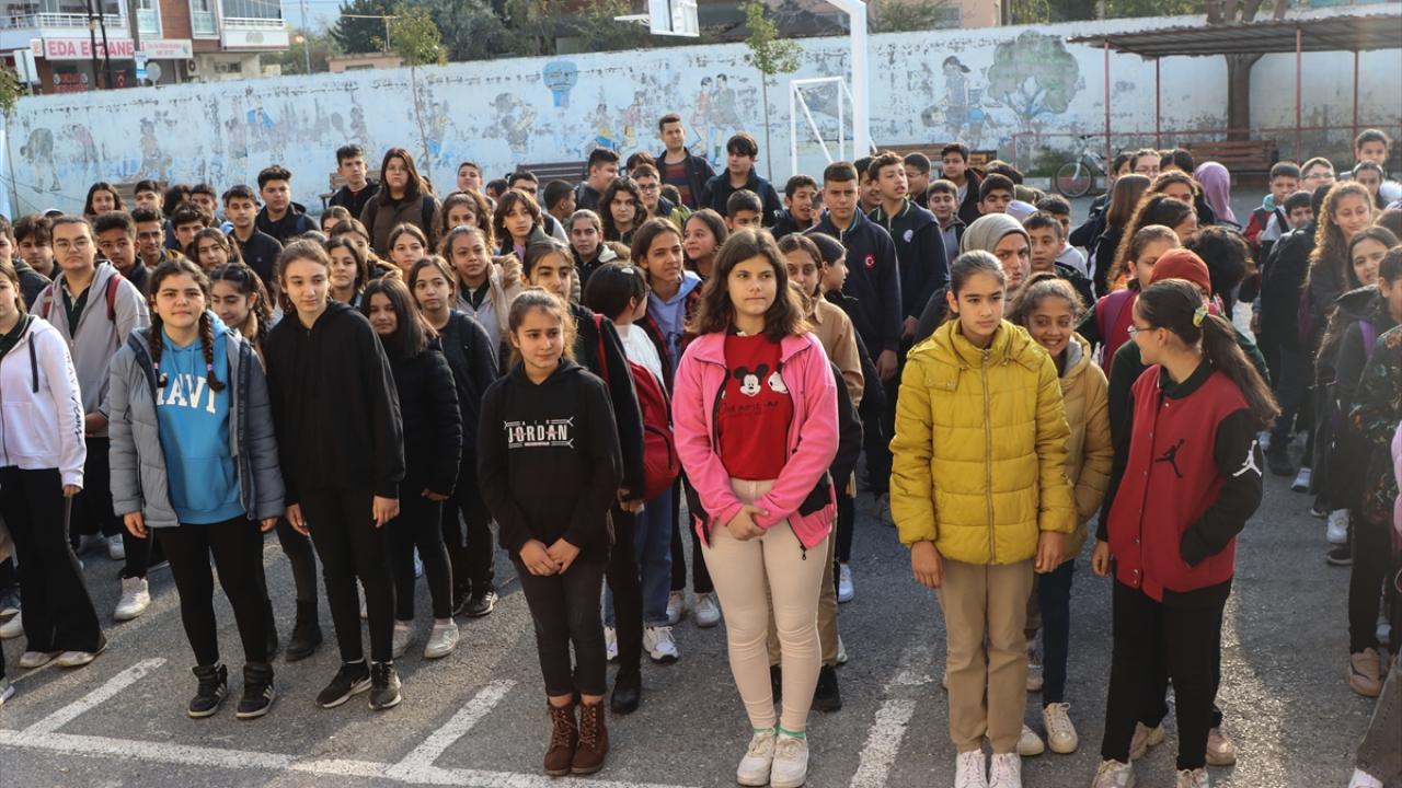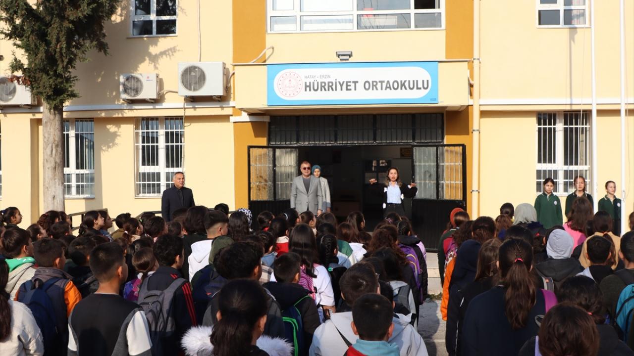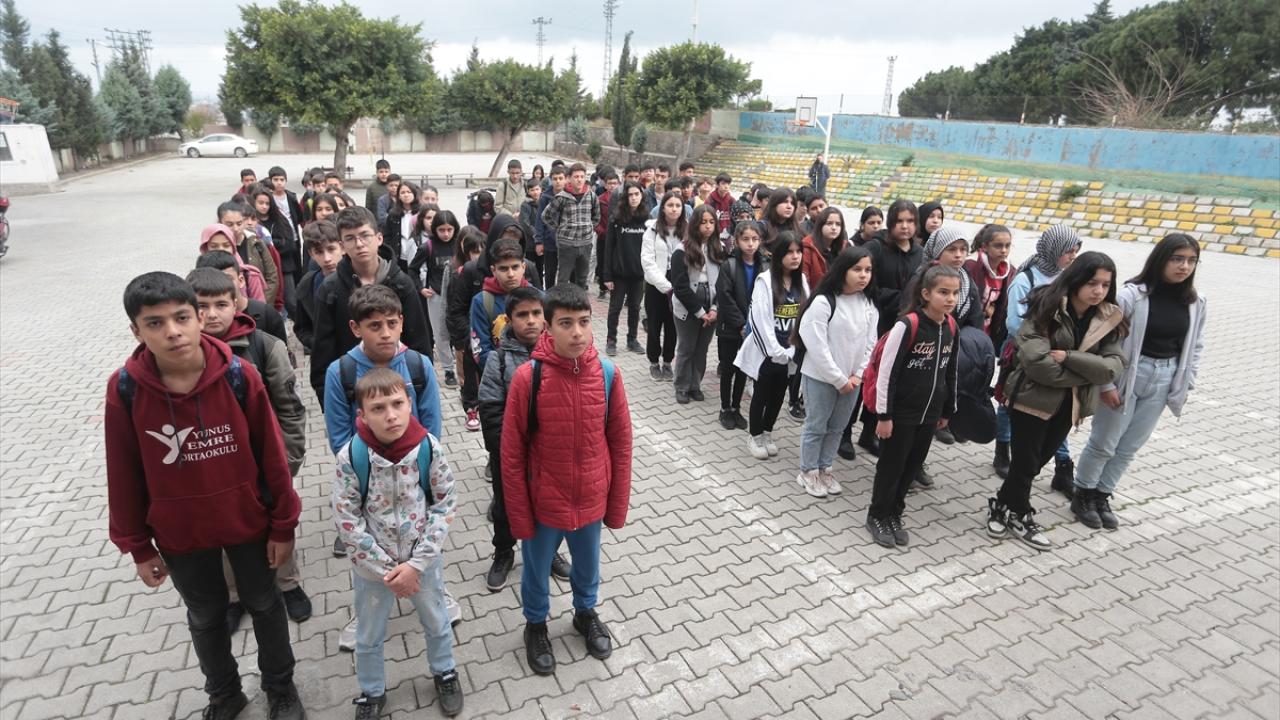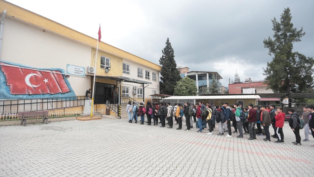 Sabah saatlerinde Payas ilçesi Yunus Emre Ortaokulu`na gelen öğrenciler okul bahçesinde toplandı.