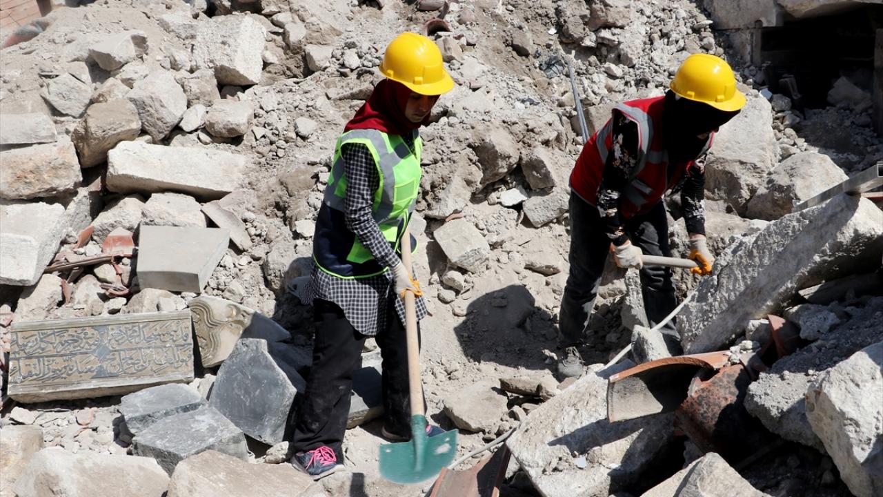 Tarih boyunca çok sayıda medeniyete ev sahipliği yapan kentte, depremlerde yıkılan cami, kilise, çeşme ve hamam gibi tarihi yapılarda ellerine kimi zaman kazma kürek kimi zaman da fırça alan kadınlar, enkaz alanlarında çalışma yapıyor.