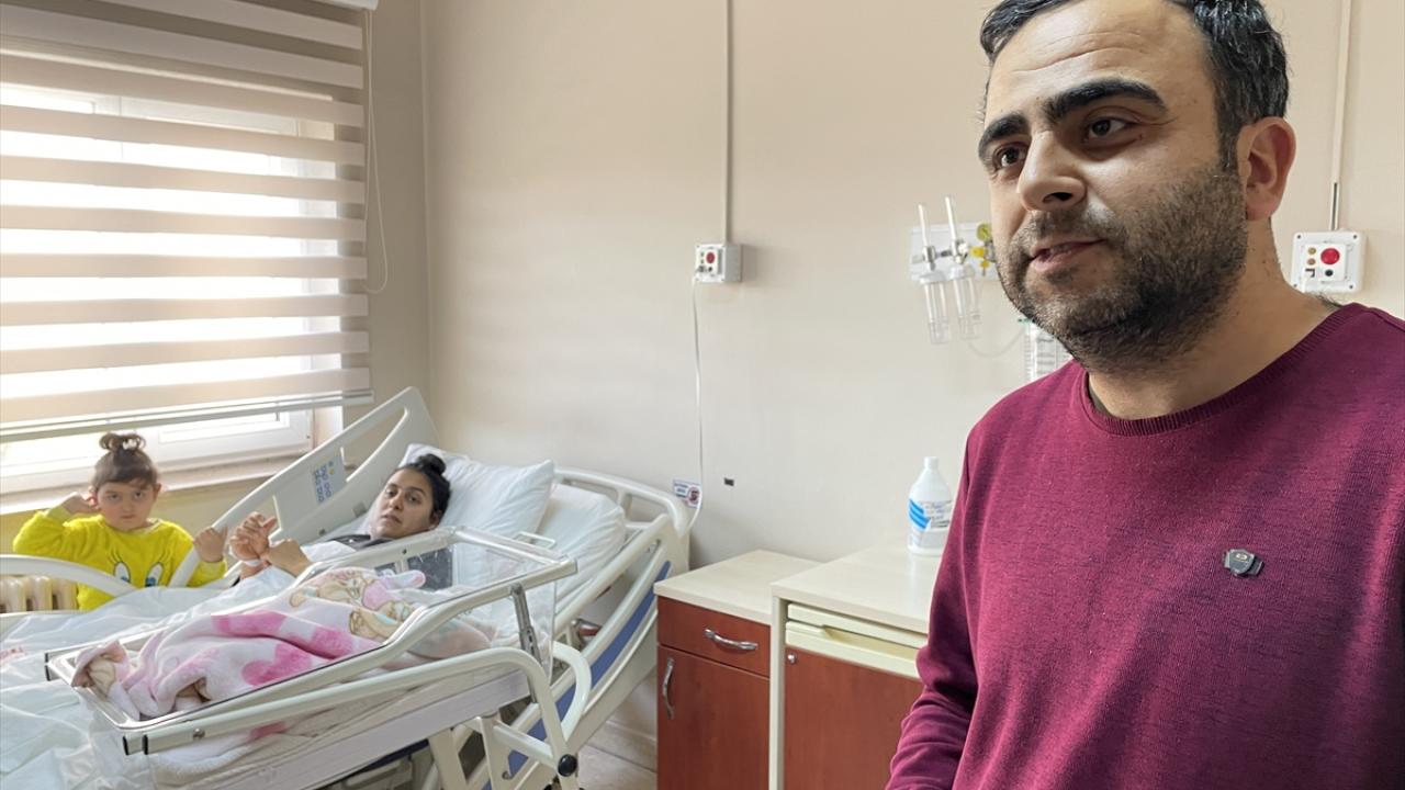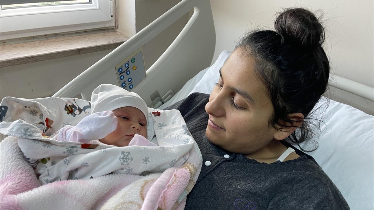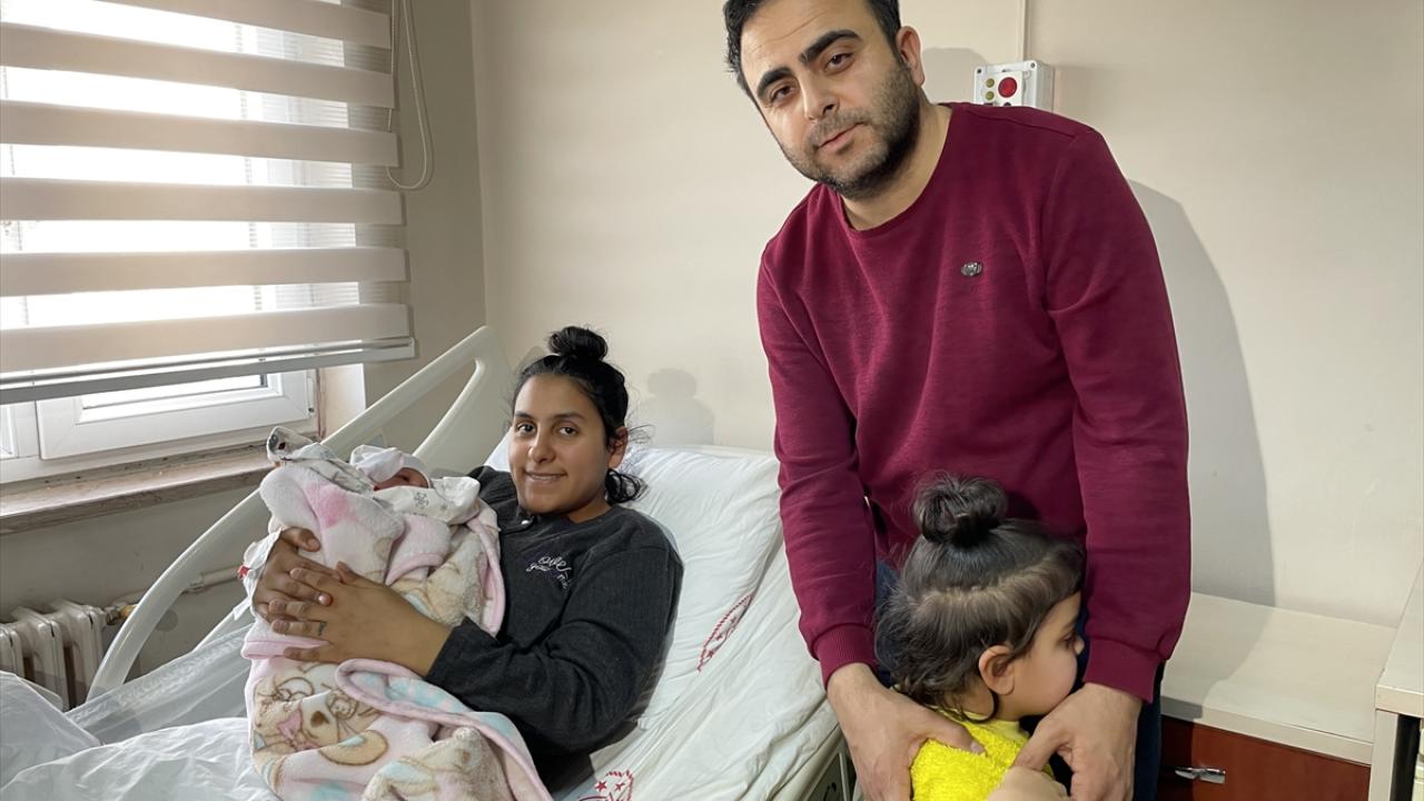 Depremde büyük korku yaşadıklarını, yıkılan evlerinden sağ kurtulduklarını belirten Topaloğlu, "Sağlıklı bir şekilde kızımı dünyaya getirdim. Hem mutluyuz hem üzüntülüyüz." dedi.