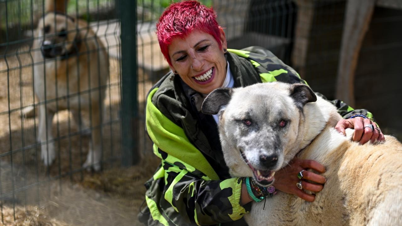 Gözleri görmediği için sokağa bırakılan ve Kahramanmaraş merkezli depremlerde bulunan ağır yaralı sahipsiz köpeğe Ankaralı hayvansever Zekiye Köklü sahip çıktı.