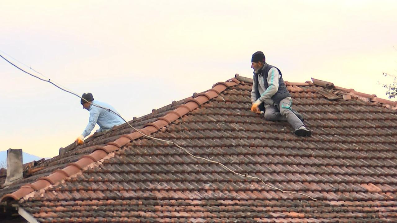Depremde hasar gören çatısını tamir eden Ahmet Demircan, “Çatıda hasar var. Duvarlarda hasar var, çatıyı tamir etmek riskli ama yağış olduğu için önlem için yapmak durumundayız” ifadelerini kullandı.