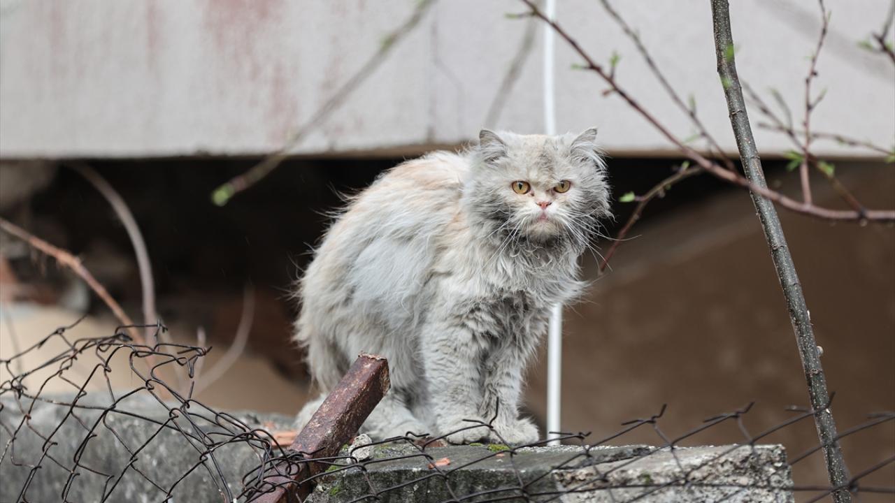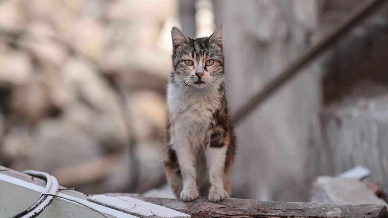 Depremin kedileri yaşadıkları enkaz dolu sokakları terk etmiyor
