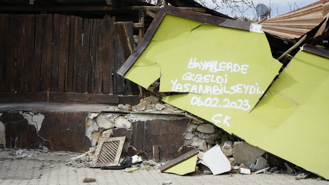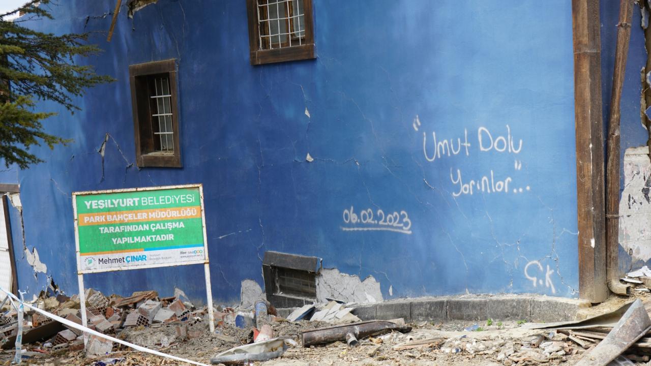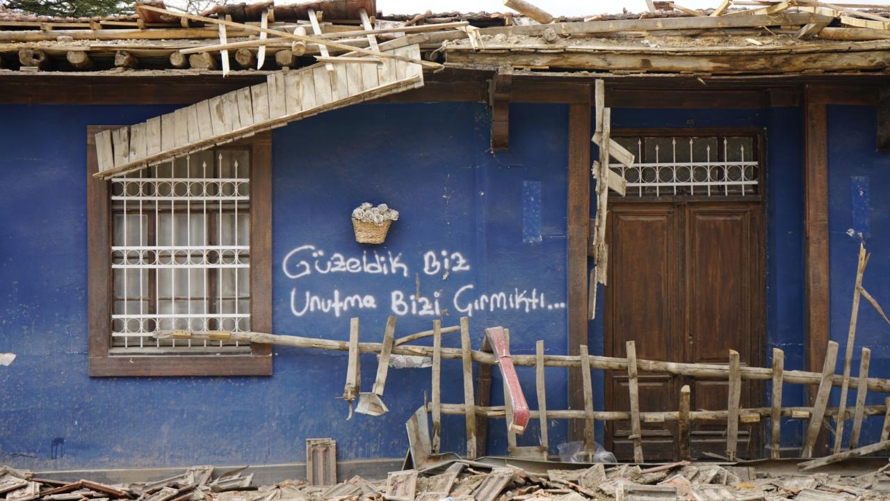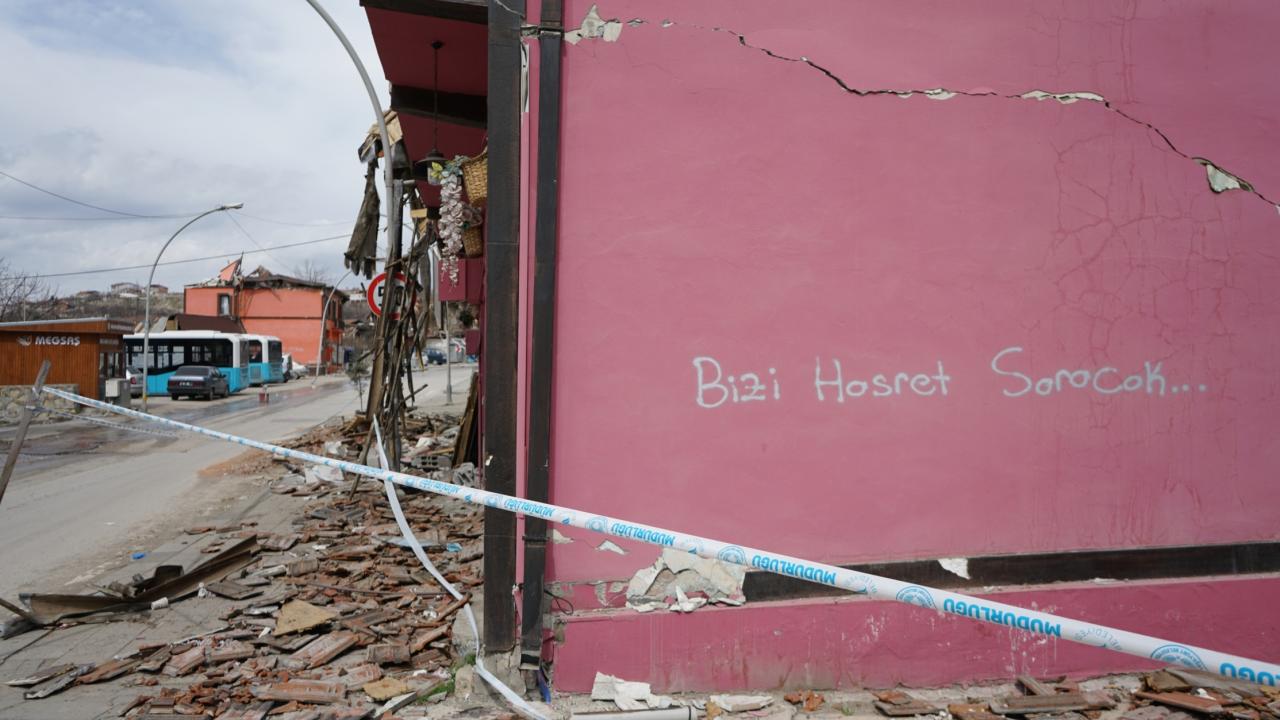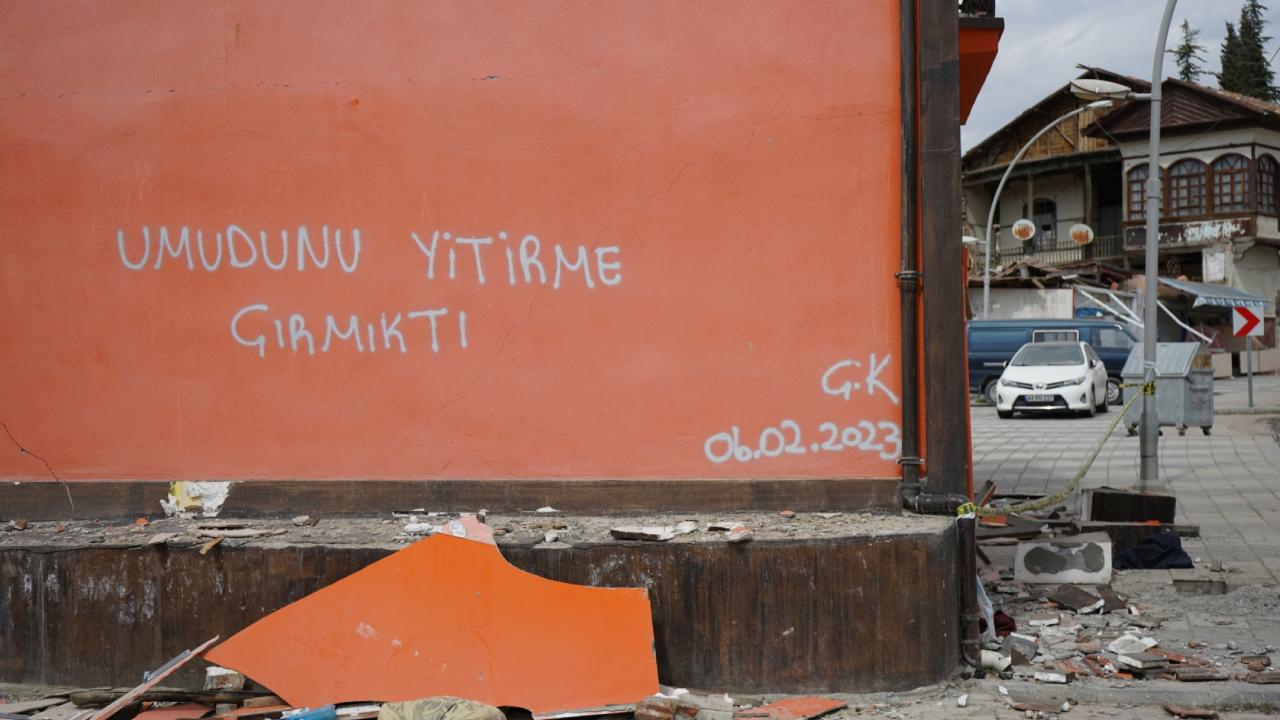 Yıkılan veya ağır hasar alan binaların duvarlarındaki yazılar, görenleri duygulandırdı.