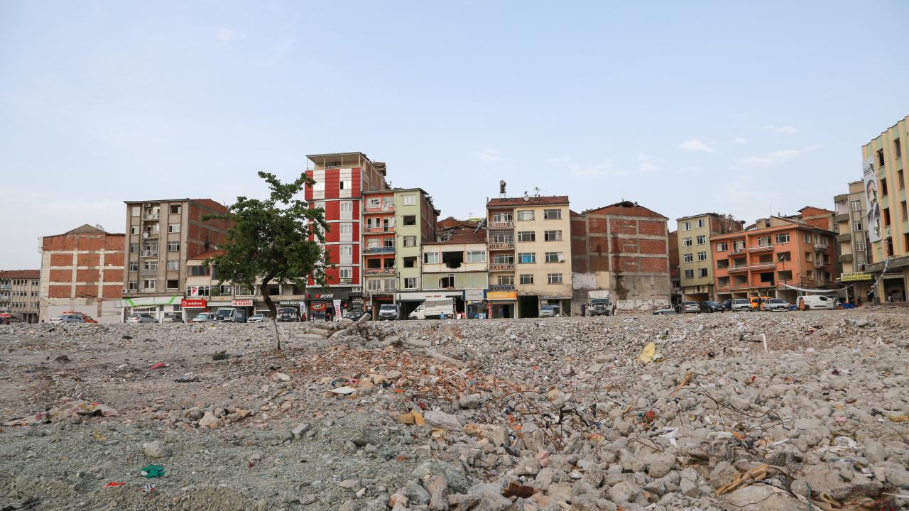 Kent merkezinde yıkılan ve şu an büyük bir boşluk olan bölgeye yeniden aynı iş yerlerini inşa edeceklerini anlatan Şahin, şunları kaydetti: