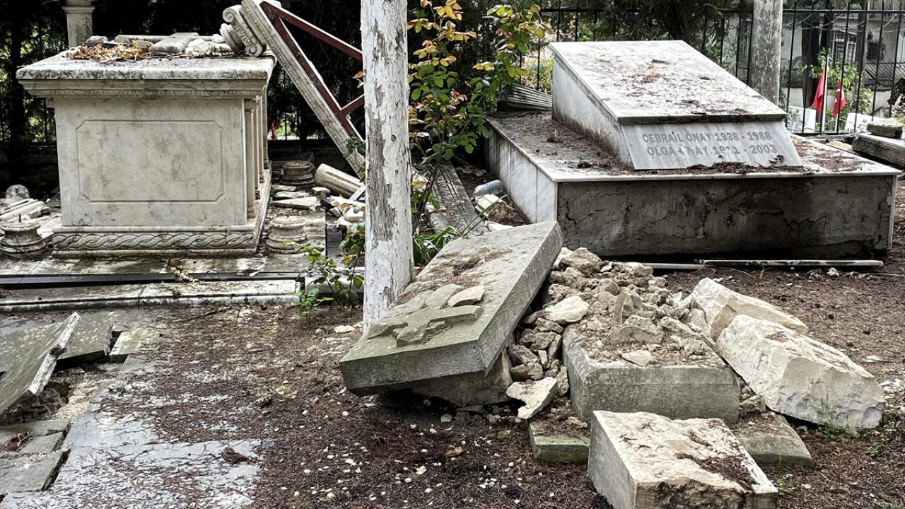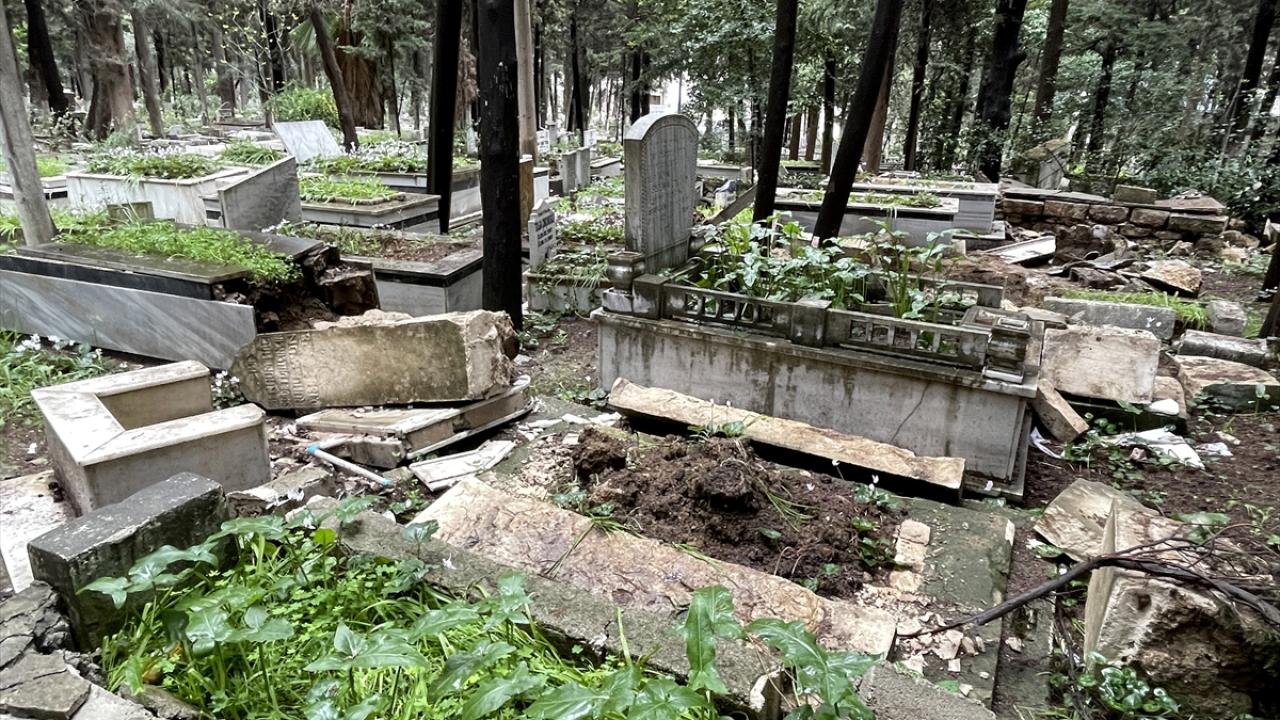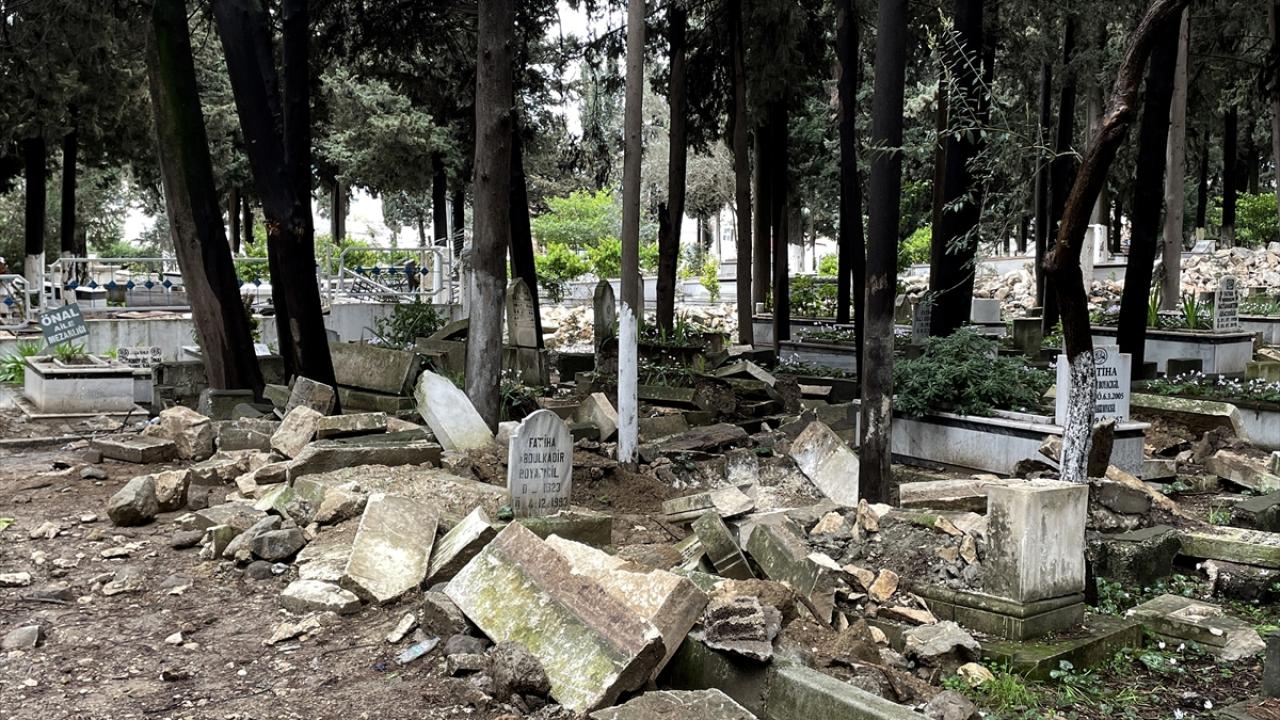 Yıkımın çok olduğu kent merkezinde Antakya Asri Mezarlığı`ndaki Müslüman ve Hristiyanların bazı kabirlerinin yönü değişti, kırık ve göçükler oluştu. Sarsıntılar nedeniyle mezarlık duvarlarının bazı bölümlerinin yıkıldığı görüldü.