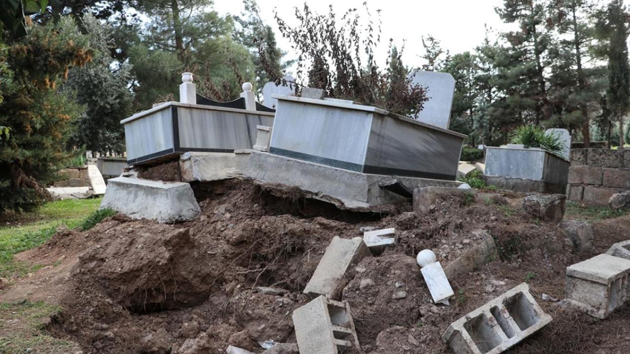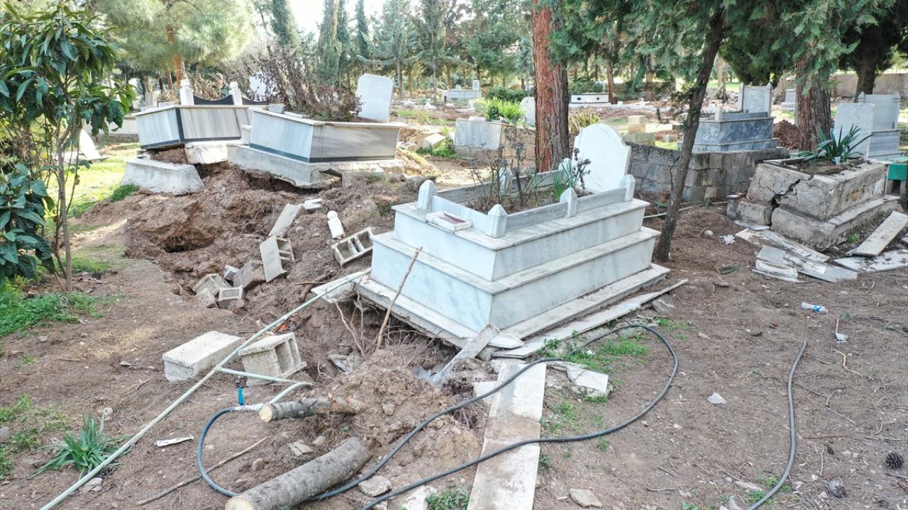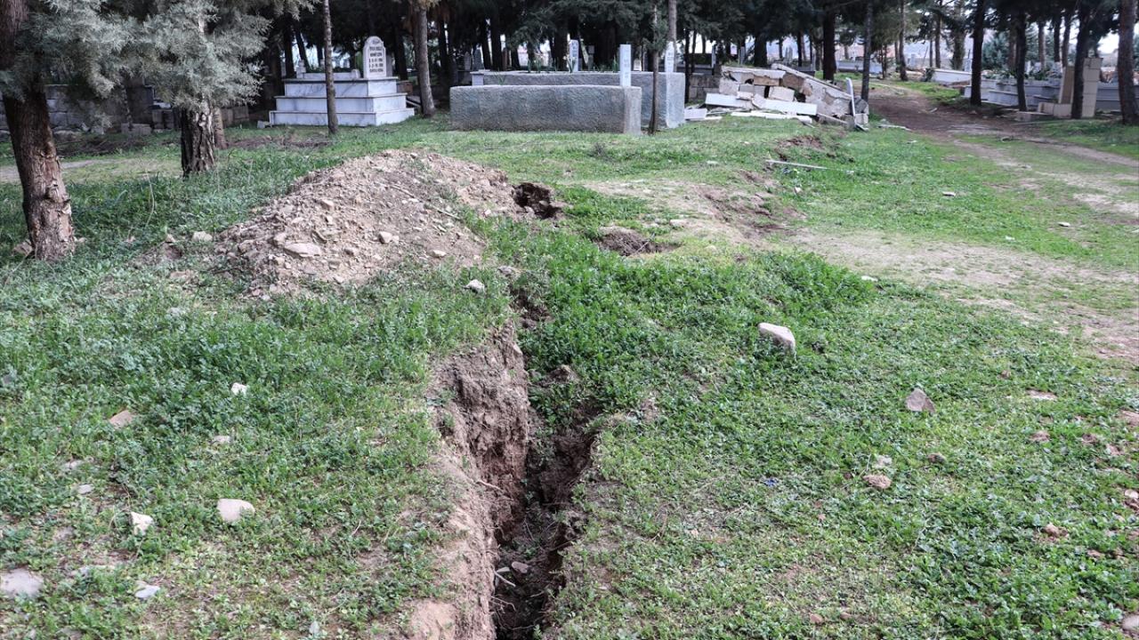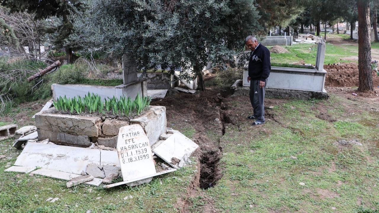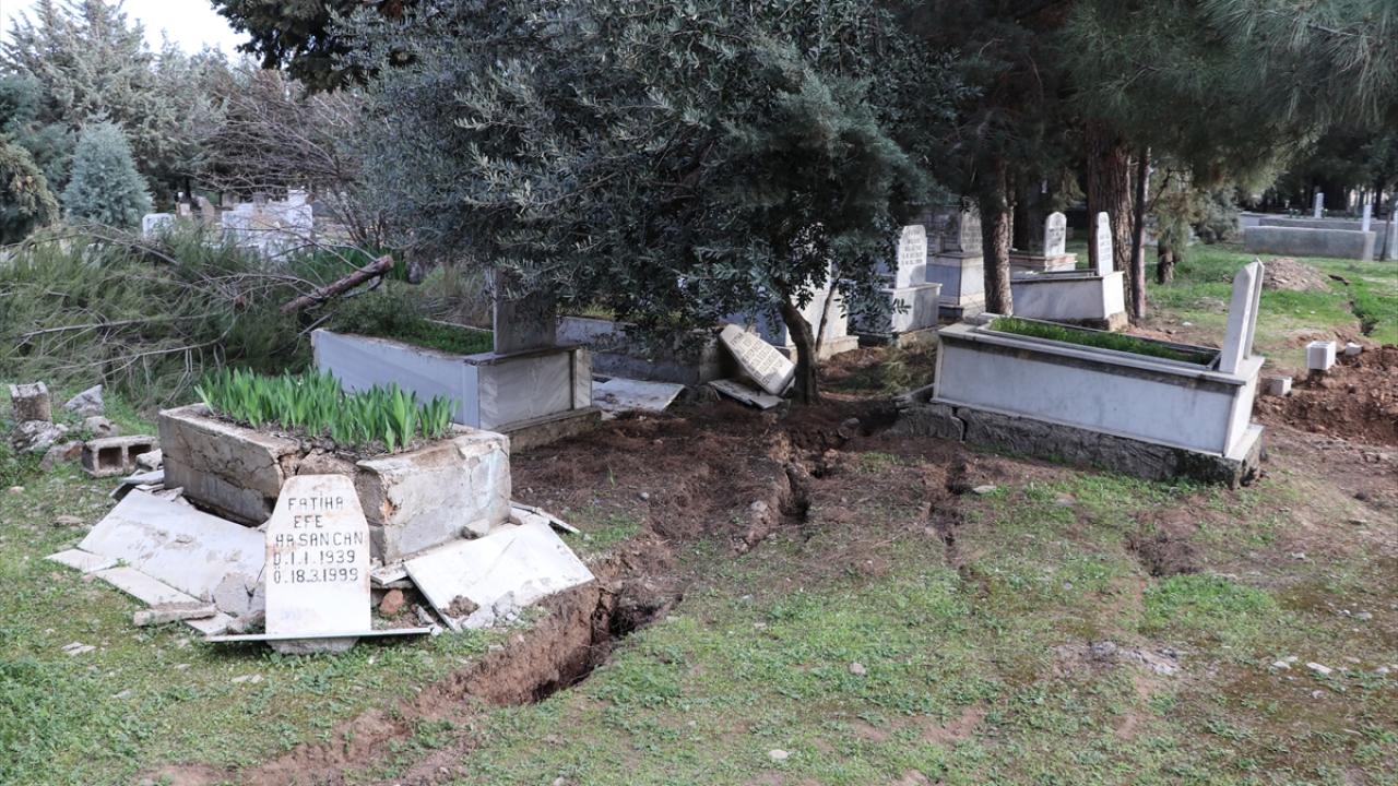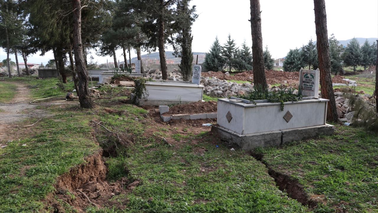 Fay hattının yakınında bulunan Nurdağı ilçesi Olucak Mahallesi`ndeki mezarlıkta bazı kabirlerin yönü değişti, kırık ve göçükler oluştu.