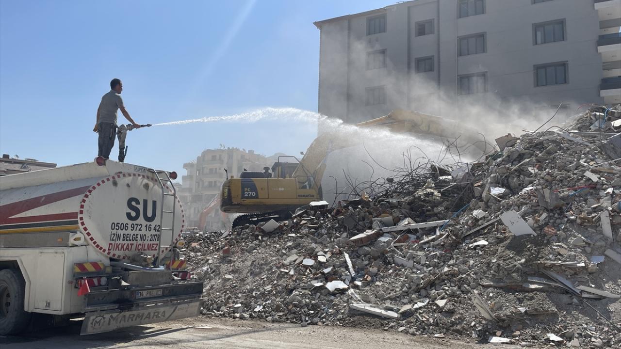 Yıkımın yapıldığı bazı alanlarda ekipler, molozların üzerine tazyikli su sıkarak önlemler alıyor. Daha sonra kamyonlara yüklenen molozlar, enkaz döküm alanlarına taşınıyor.